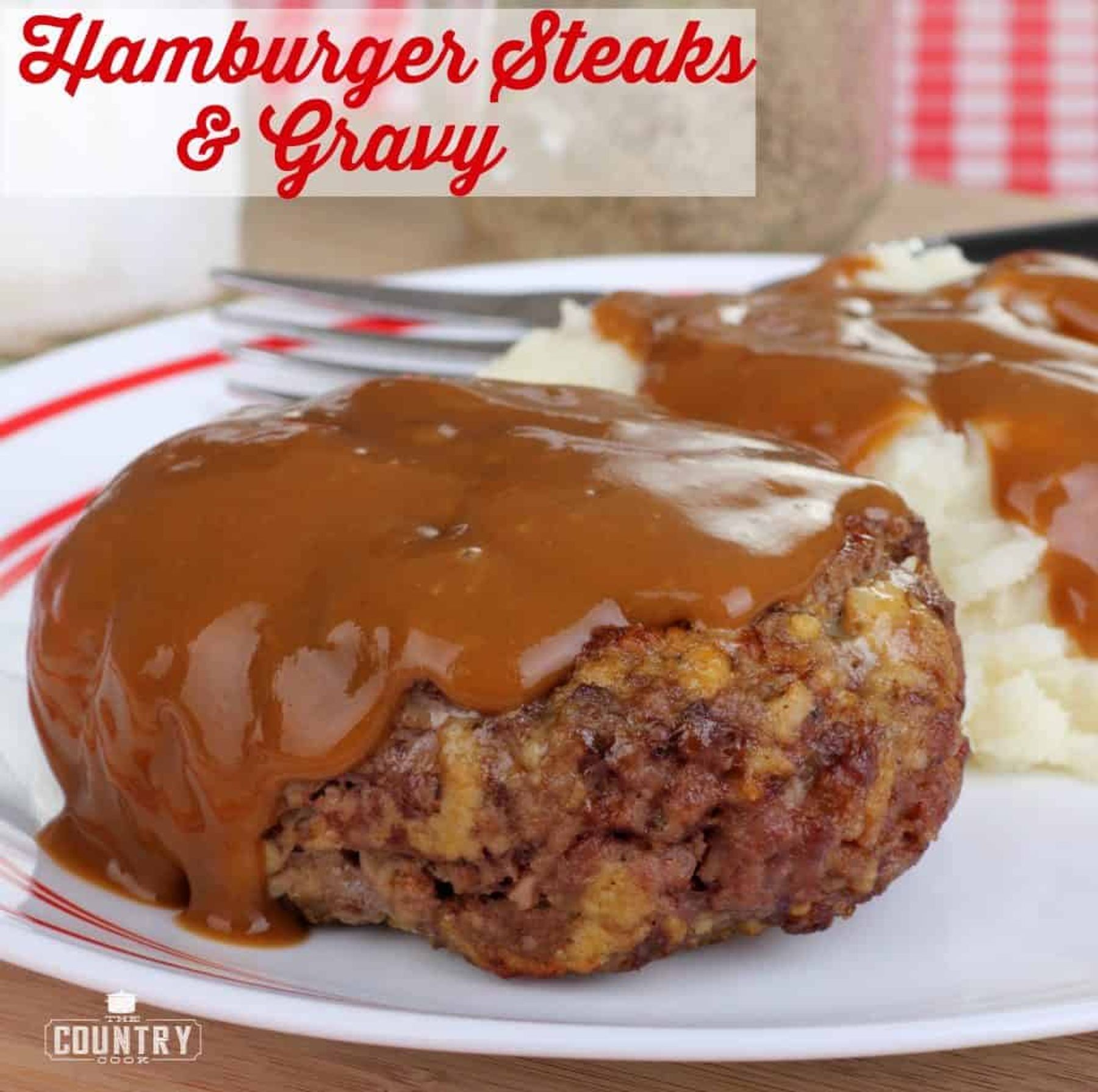 Hamburger Steaks and Gravy (also called Salisbury Steak) is ground beef with seasoning, peppers and onion all cooked in a delicious, thick gravy!