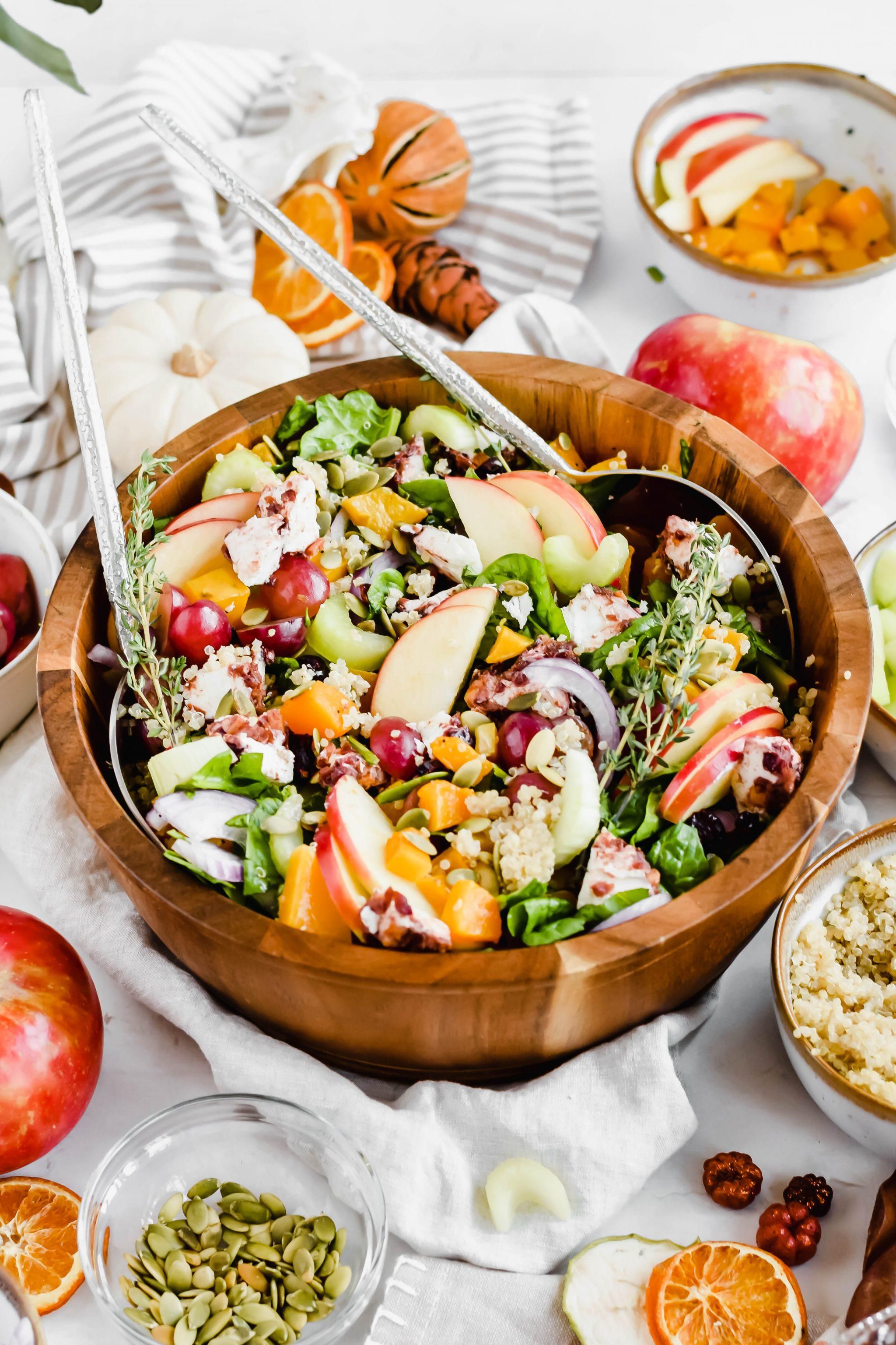 This Seasonal Harvest Salad is truly the taste of fall! Made with hearty butternut squash, tart Pink Lady apple chunks, juicy grapes, sweet dried cranberries, and more, it's fresh, nutritious, the perfect representation of all there is to love about this time of year.