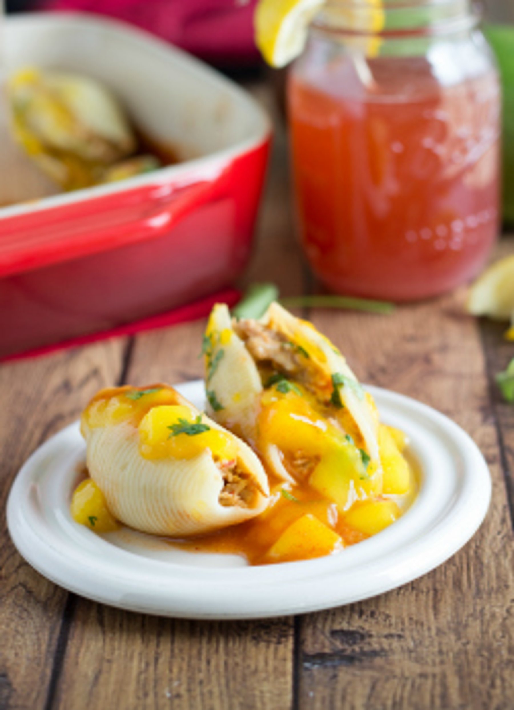 Stuffed Shells with a twist - made in a slow cooker and Hawaiian Luau flavored with a mango chutney. Amazing!
