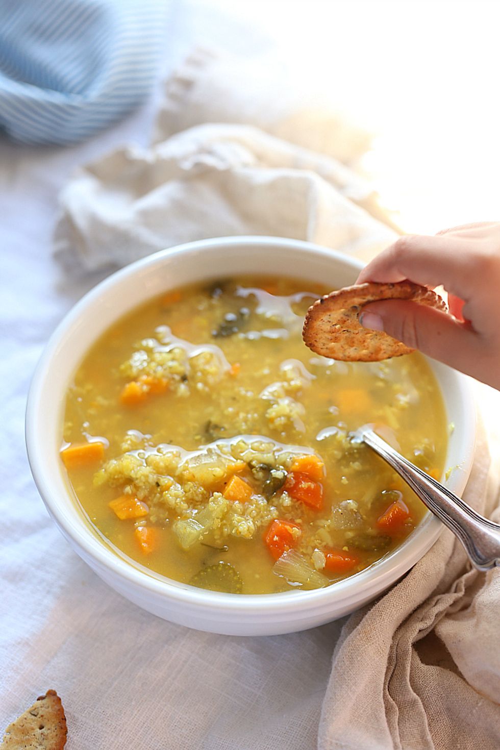 This hearty vegetarian crock pot rice soup recipe is the perfect food-for-your-soul! Made with vegetable broth or if you are not a vegetarian add chicken for added protein!