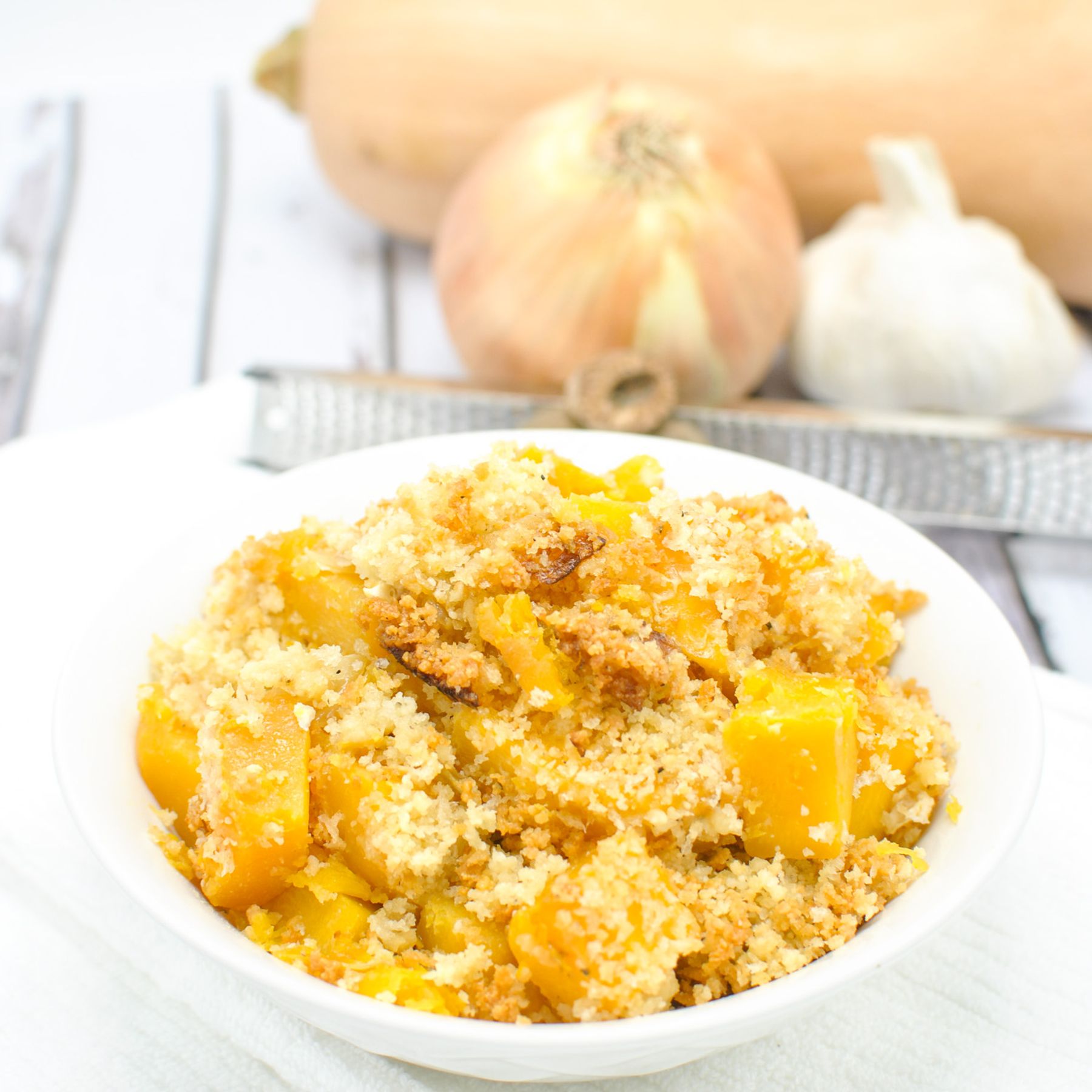 Healthier Butternut Squash Casserole with Panko Parmesan Breadcrumb Topping