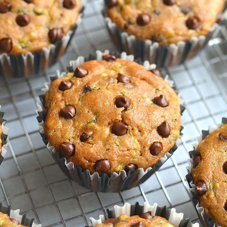 These Healthier Chocolate Chip Zucchini Muffins are dairy free, made with real food ingredients and are lighter and healthier. A gluten free snack you can't resist! Perfect for post workout, breakfast or a snack! Gluten Free + Low Calorie
