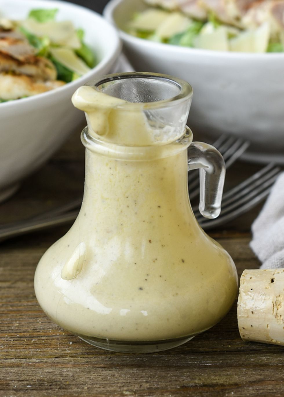 Nobody has time for salad without dressing. Cut half the calories & fat by making this 5-minute Healthy Authentic Caesar Dressing instead!