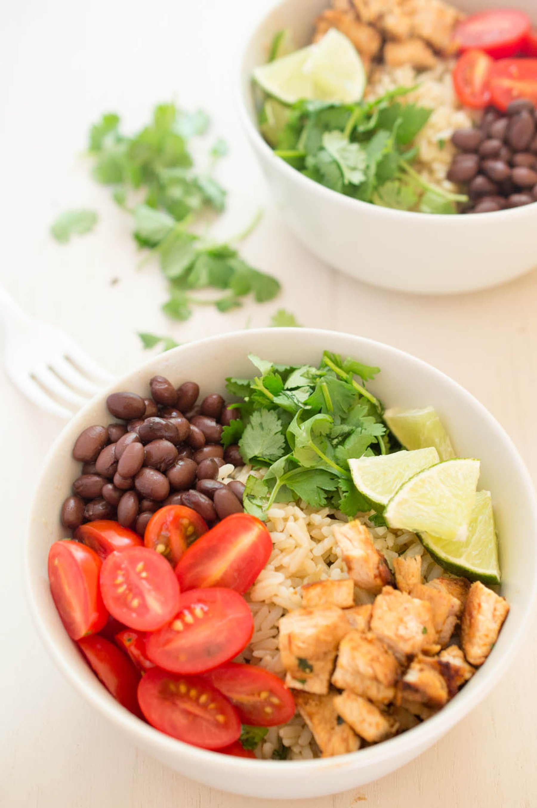 Zesty Chicken Burrito Bowl loaded with tons of fresh Mexican flavor! Just like Chipotle’s burrito bowl but healthier!