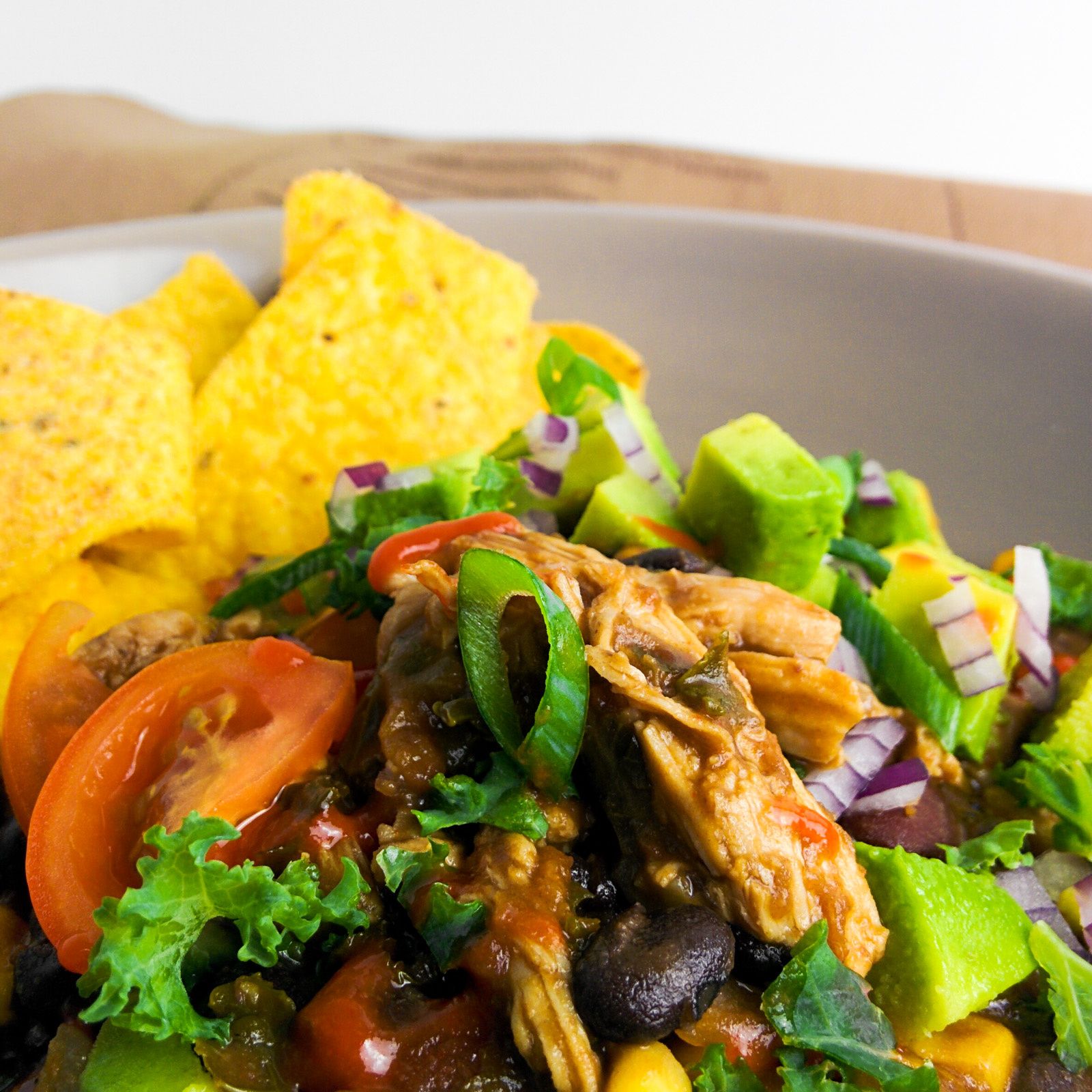 Healthy chili con pollo with kale InJohnnysKitchenFebruary 03, 2020 57 Photo by www.injohnnyskitchen.com Hearty and filling stew made with shredded chicken thigh, kale, beans, corn and brown malty beer. Easy to prepare the day before.Try itSee the full directions on my site