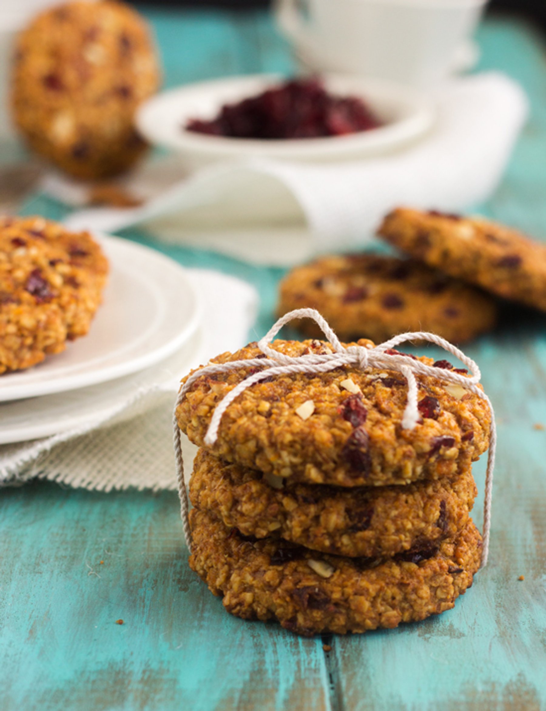 These quick and easy, healthy breakfast cookies are made with oatmeal, sweet potato, almond butter, and cranberries. Perfect for on the go!