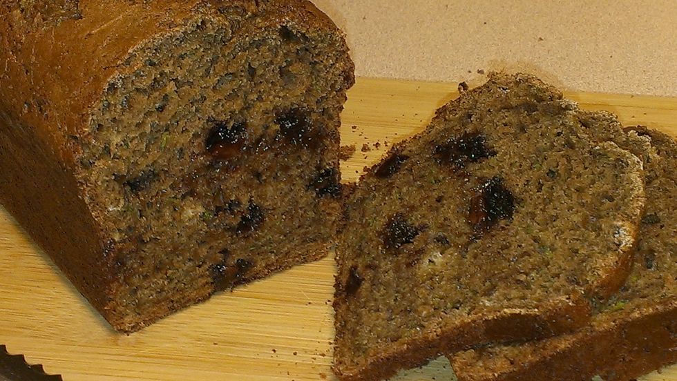 In a separate bowl, beat together the eggs and sugar. Add the applesauce, zucchini and vanilla and stir until well combined.