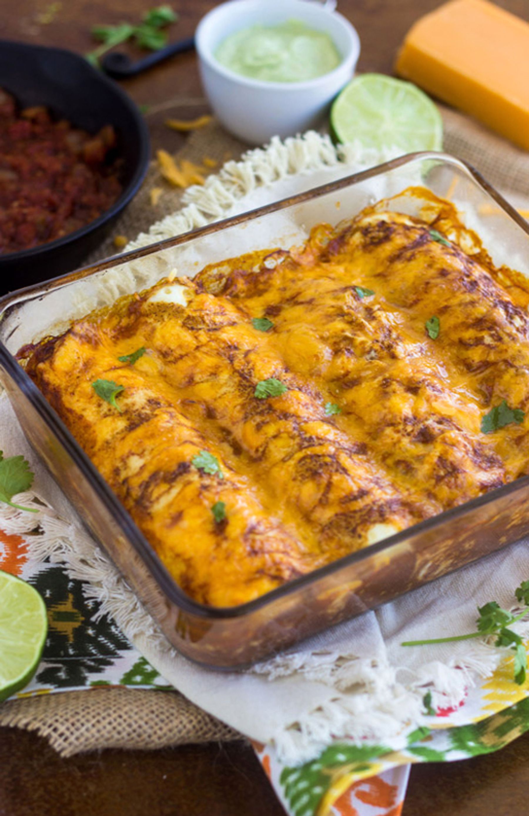 This quick and easy, healthy chicken enchilada recipe is gluten free, and low carb, thanks to a secret ingredient: egg white “tortillas!”