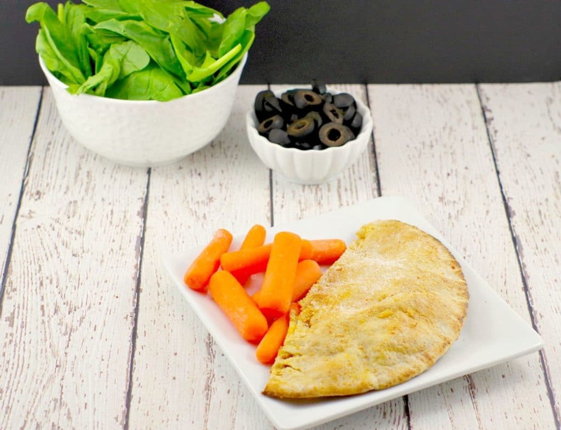 A healthy homemade pizza pop (pizza pocket) stuffed with Mediterranean flavors like black olive, feta cheese and spinach. It's only 4 Weight Watchers Freestyle Smart Points and a healthy lunch (hot or cold) for the kids' lunch box!