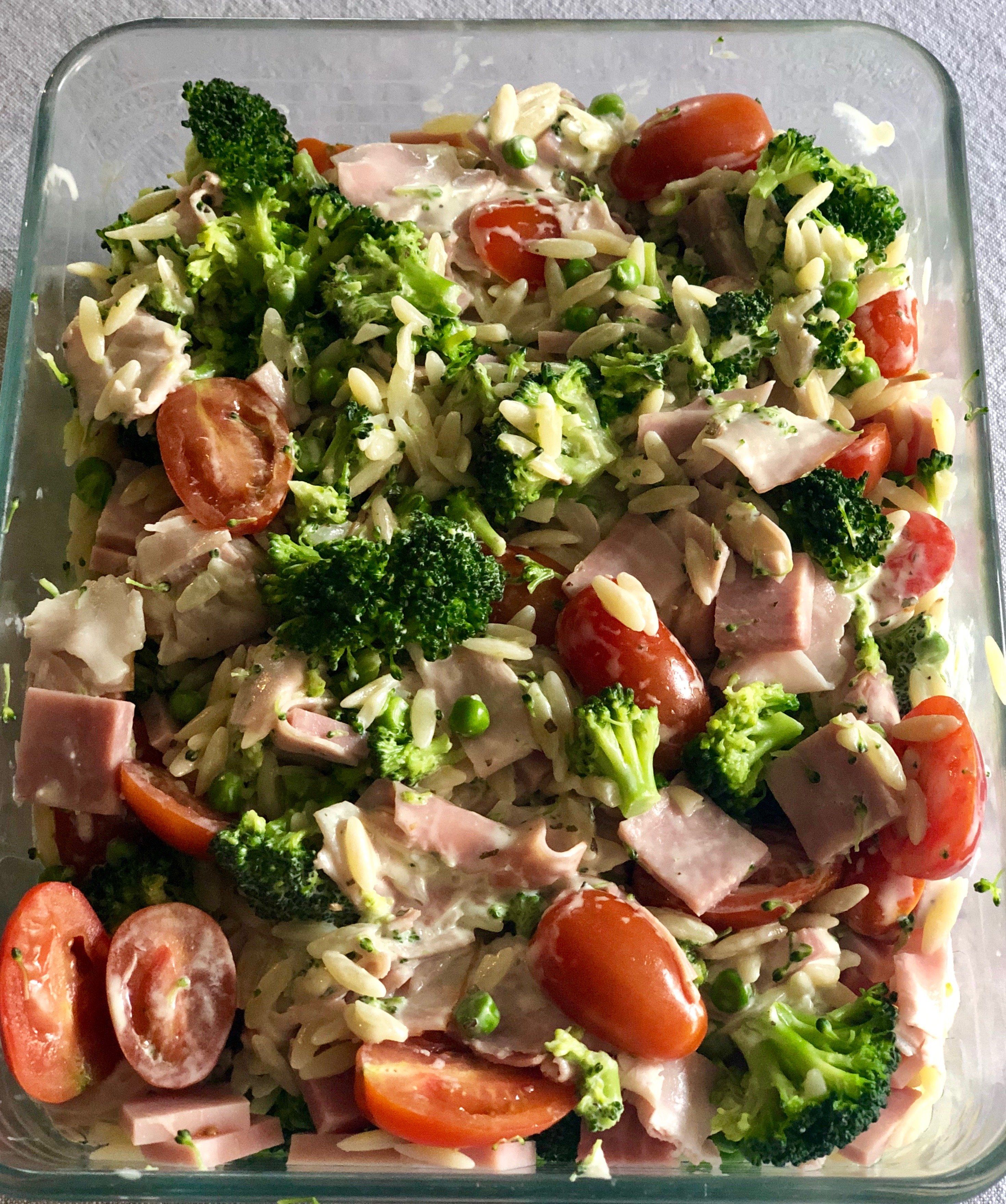 This healthy lukewarm green Greek pasta salad is so easy for a healthy and fast lunch when you have no time.