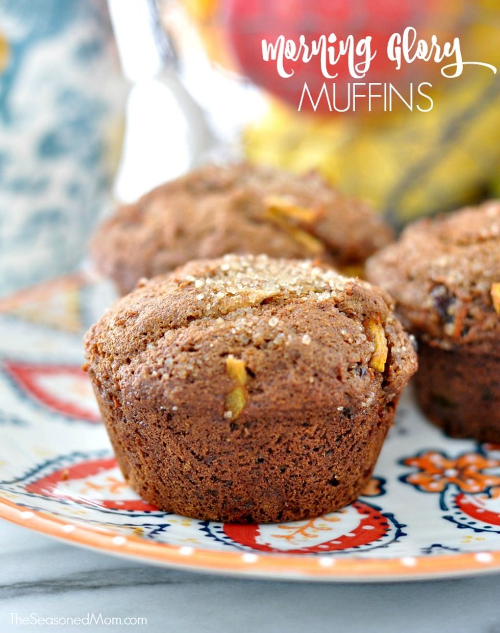 These easy Morning Glory Muffins are the perfect way to start your day! Loaded with carrots, raisins, apples, nuts and spices, they're full of healthy, flavorful ingredients that satisfy hungry kids and adults. Make them ahead for busy mornings or easy snacks -- they just get better as they sit!
