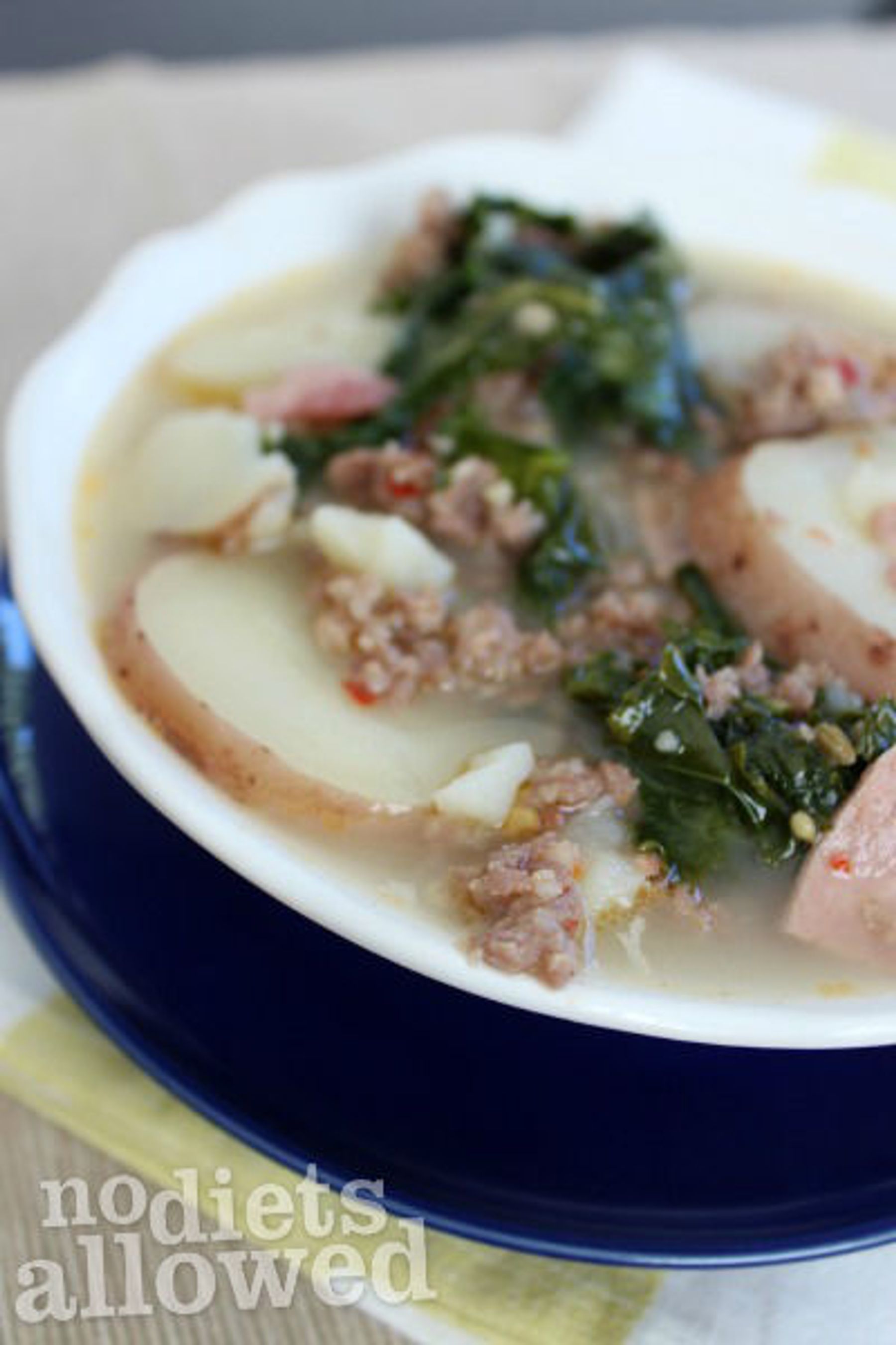 Add potatoes, garlic, and turkey bacon. Cook until potatoes are soften about 15 minutes.