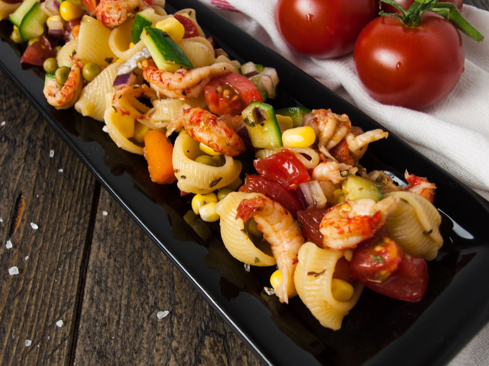 Healthy pasta salad with crayfish done in 15 minutes