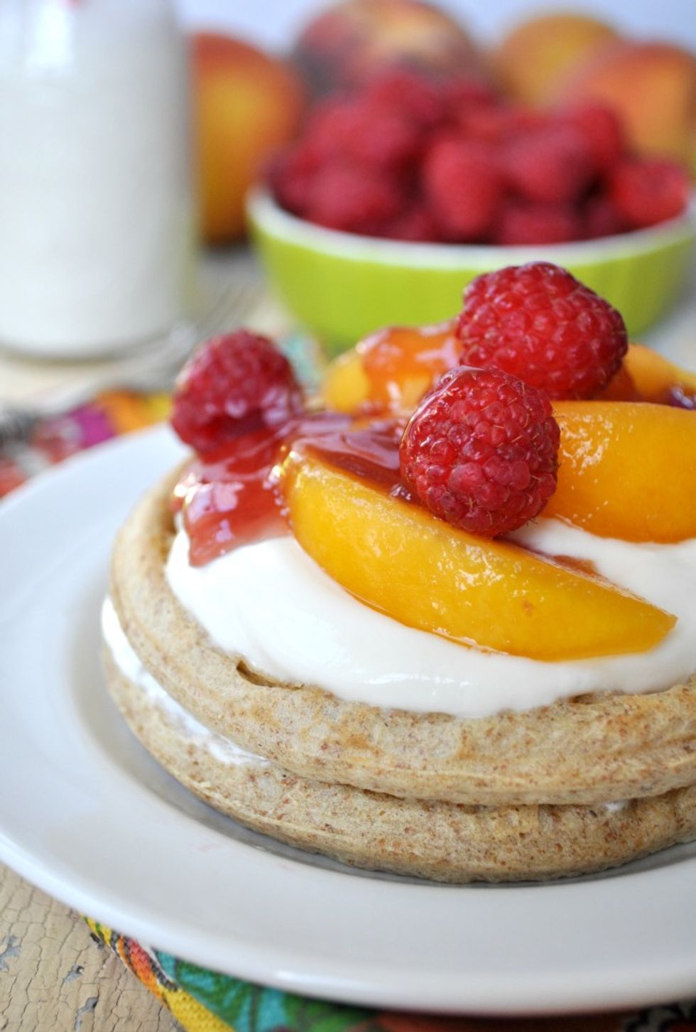 A nutritious, 5-minute breakfast that’s bursting with the fresh flavors of the season, these Healthy Peach Melba Breakfast Shortcakes are a fast, easy way to celebrate warm, sunny days! Whole grain waffles are topped with vanilla Greek-style yogurt, peaches, raspberries, and a simple raspberry sauce for a protein-and-fiber-packed meal that only tastes like a decadent dessert!