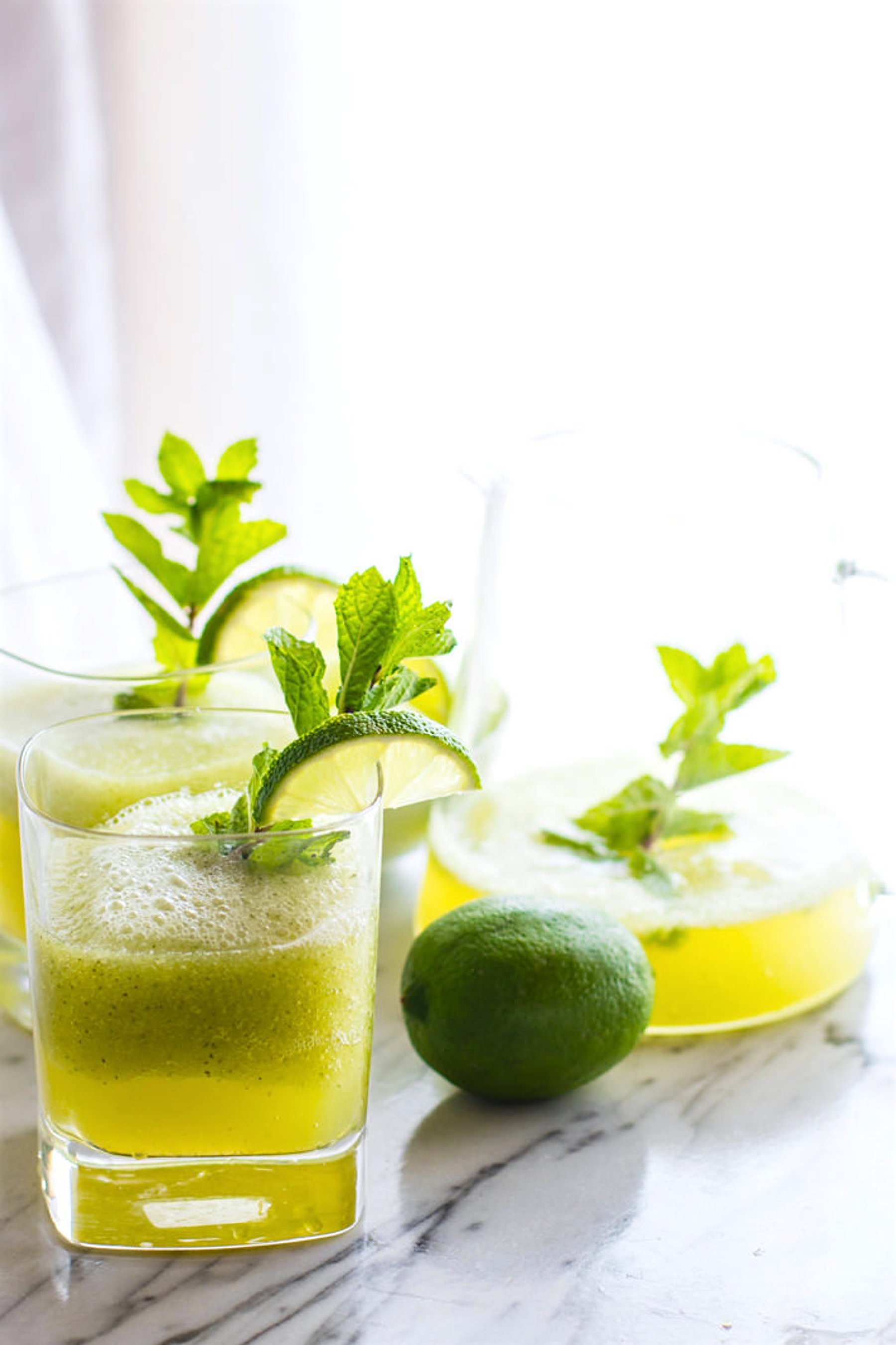 Oh so REFRESHING Sparkling Mint Melon Limeade! A healthy bubbly limeade recipe that will keep you cool and collected all summer! Quick to make, made with natural nourishing ingredients, and delicious to sip on anytime of day. A must make for parties, events, and more! Paleo, Vegan, and just plain TASTY!