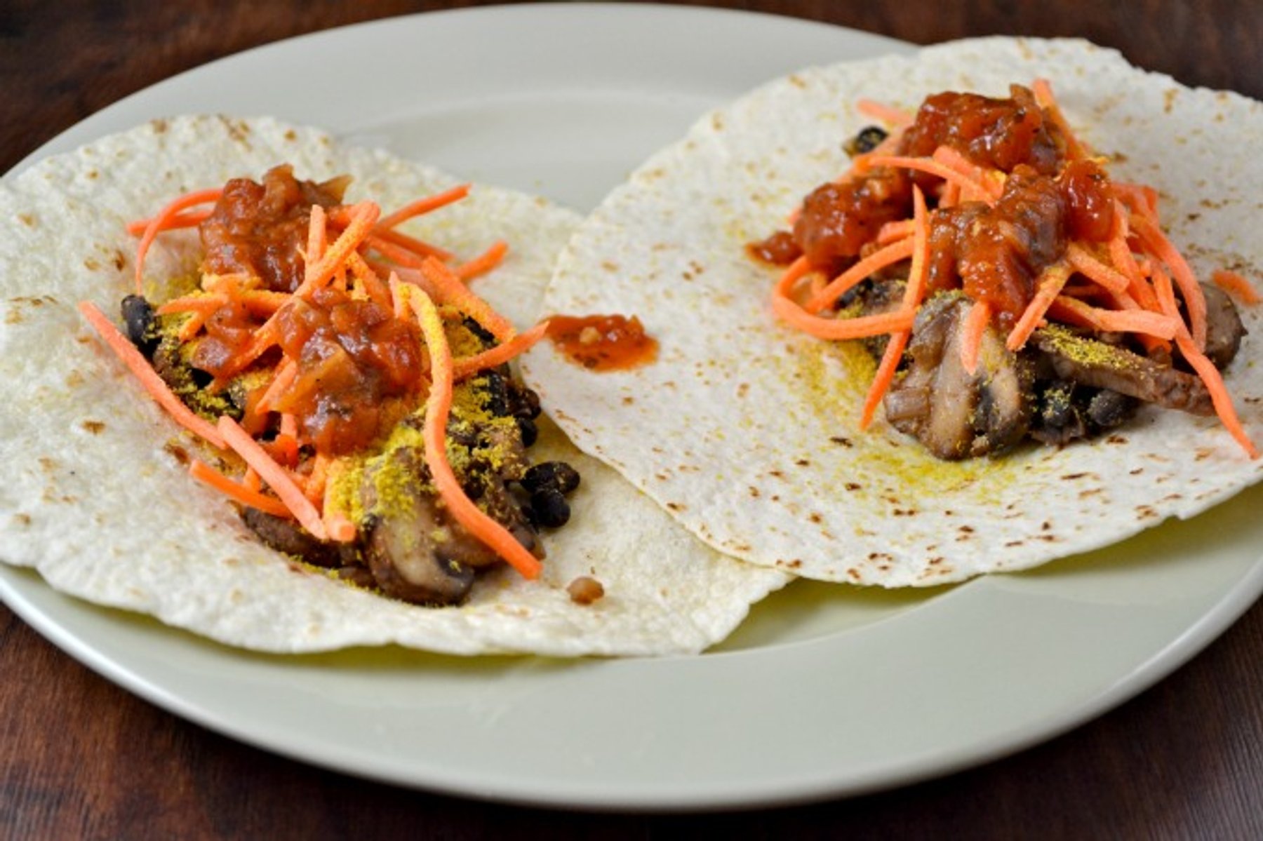 Combine onion, garlic, mushrooms, olive oil, and spices (sea salt, cumin, cayenne, pepper) in a large skillet.