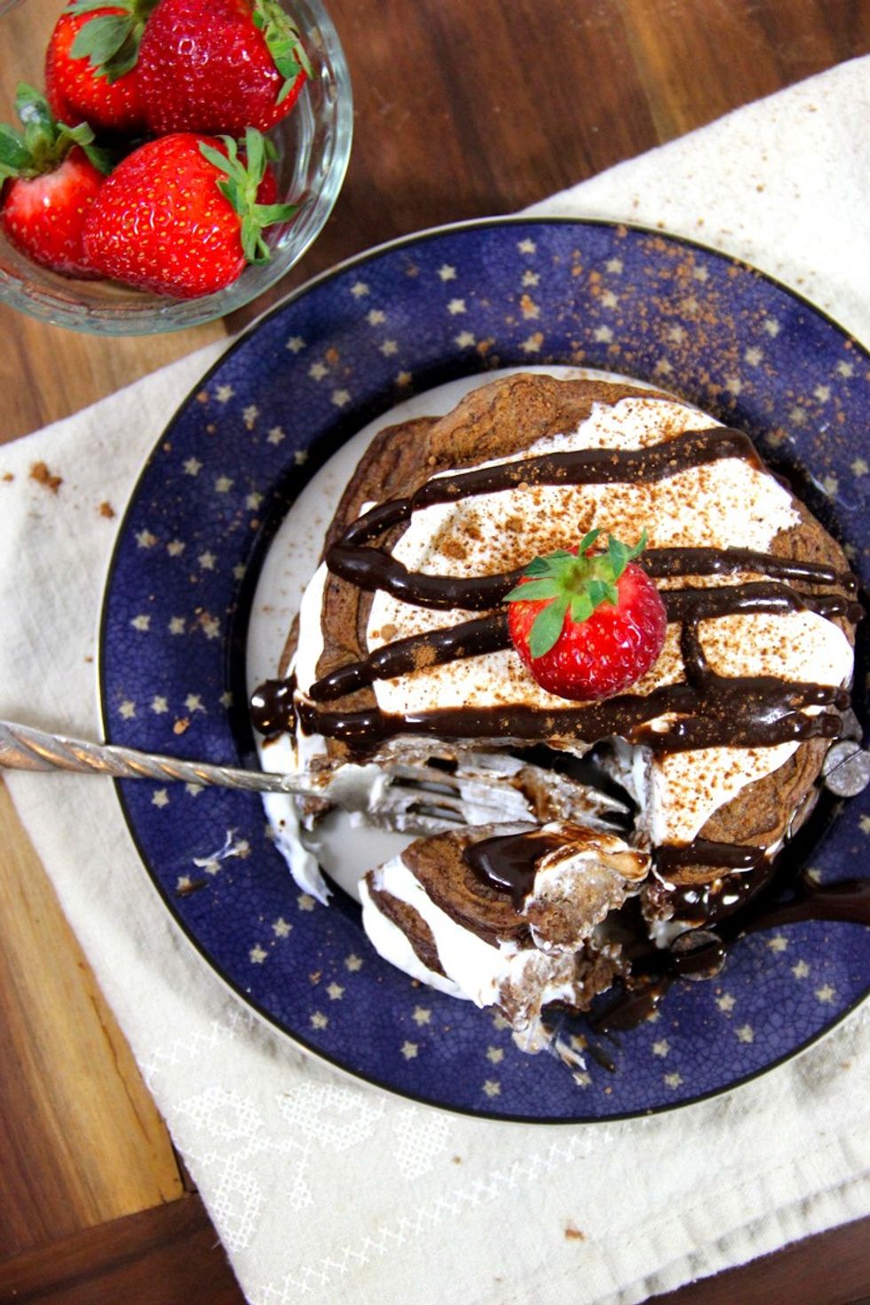 Decadent and delicious vegan tiramisu protein pancakes- the only thing missing is the guilt!