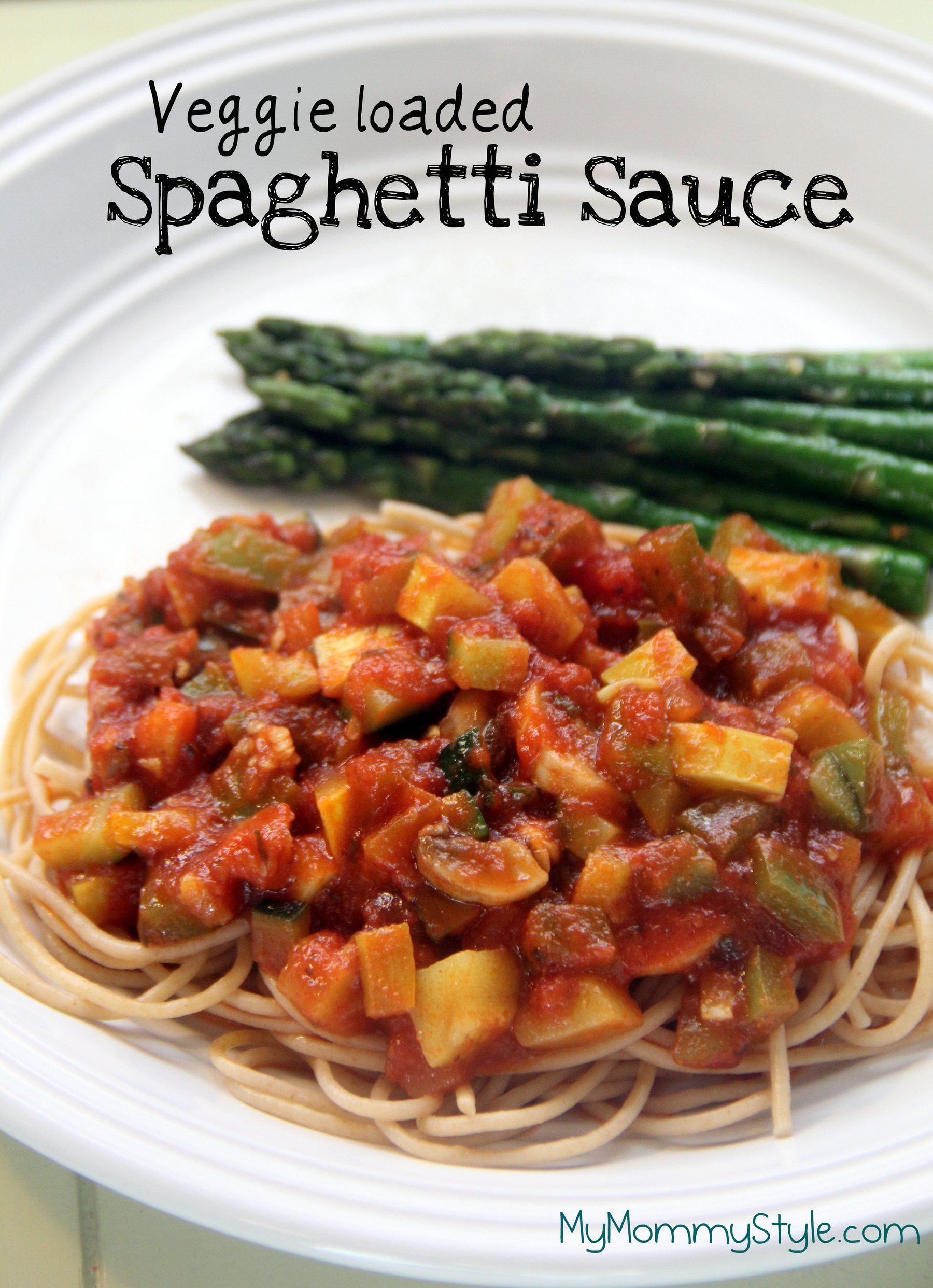 I love to add a lot of veggies to my spaghetti sauce because I love chunky sauces and I can get my kids to eat a ton of vegetables without complaining. You can make this as chunky as you would like, just add more sauce if you want it thinner. This is a delicious pasta dish you won't feel guilty about when you are done.