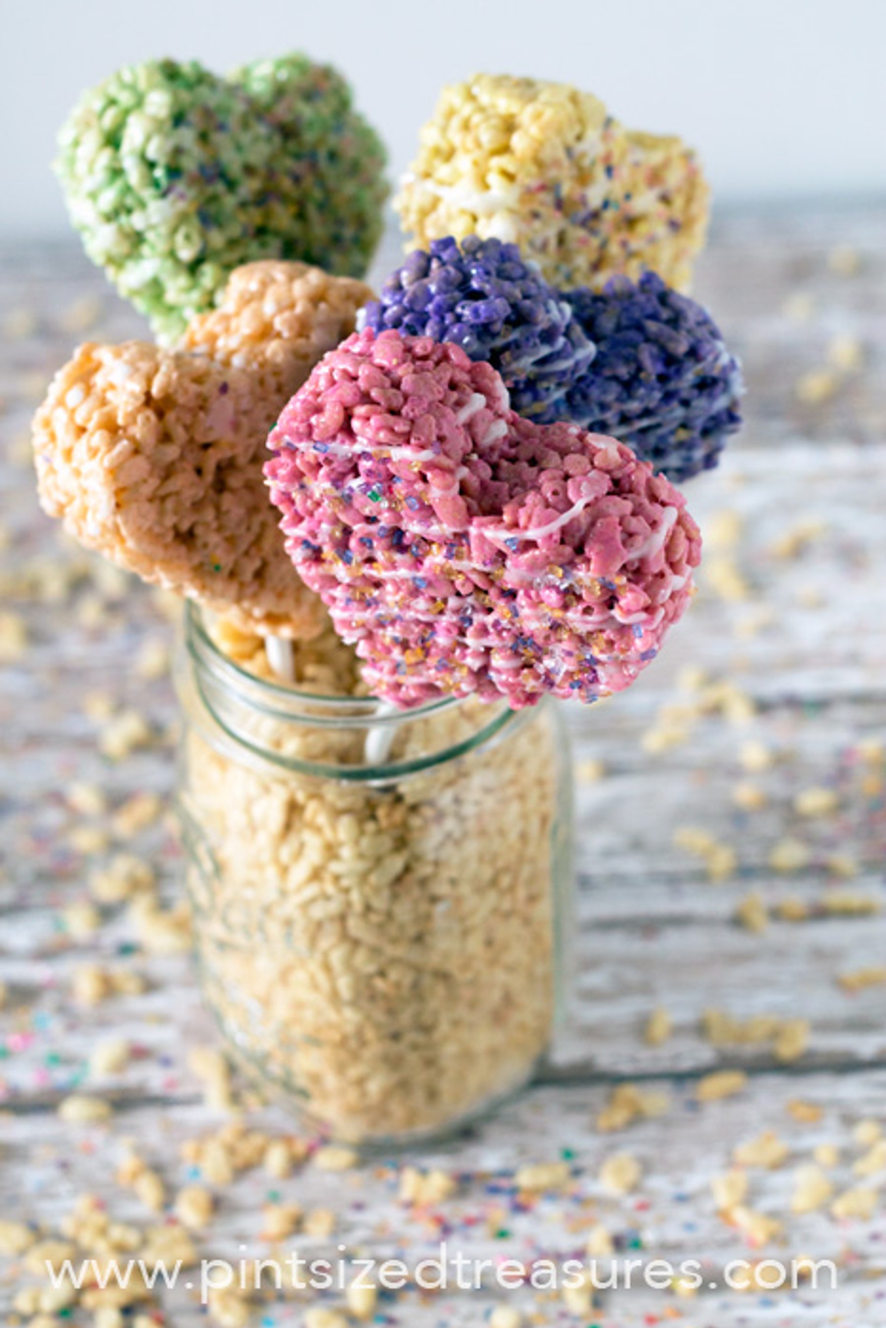These Heart-shaped Rice Krispie Treat Pops are such a cute and easy Valentine\\\'s Day treat for the kids ready in 15 minutes!