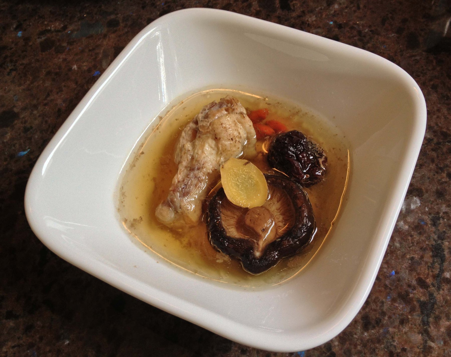 Put chicken, shitake, dates, and goji berries in a pot, and add enough water or chicken broth to cover.