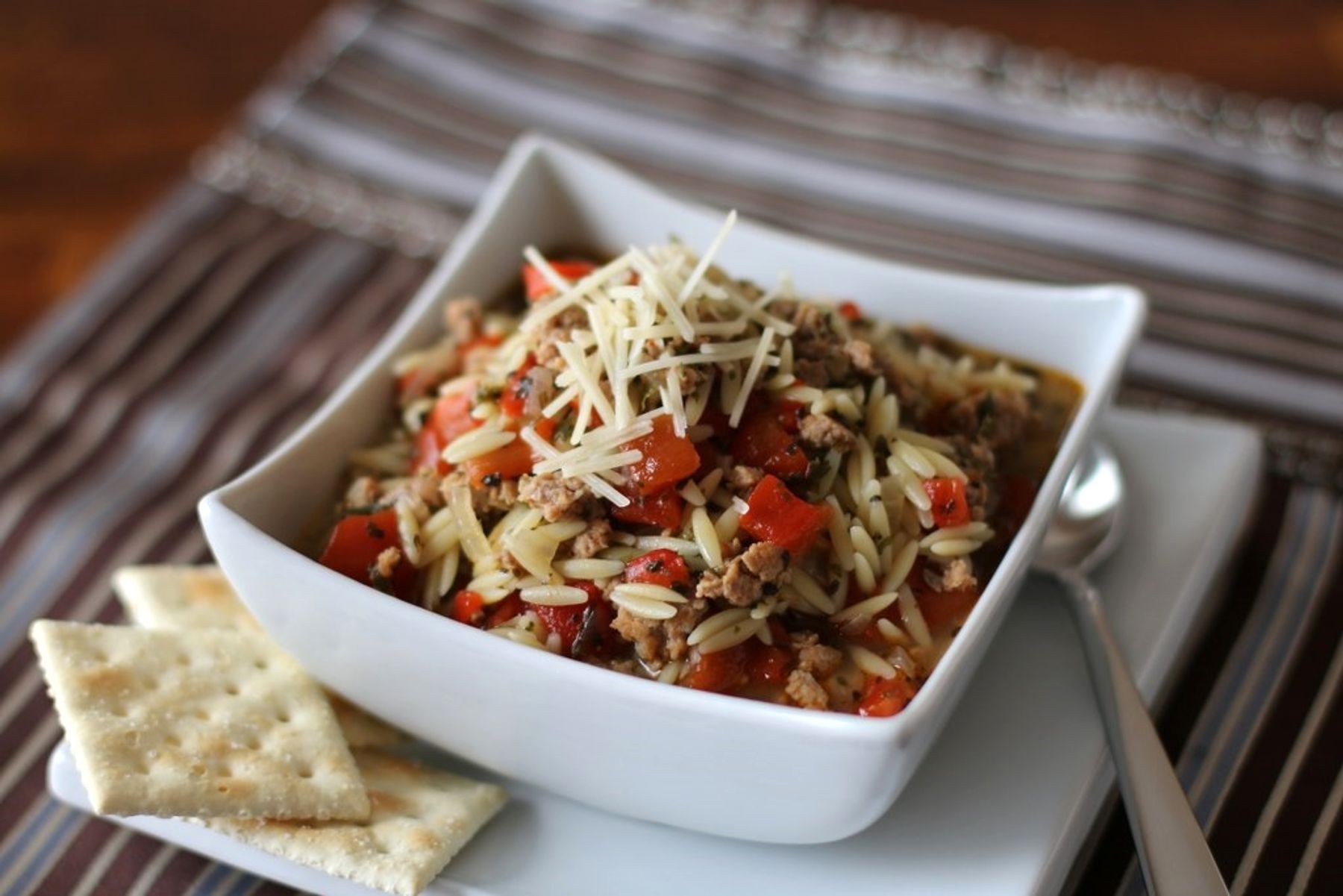 Quick and easy to make hearty Italian sausage soup with a broth base and it’s loaded with hot Italian turkey sausage, orzo, roasted red peppers, and assorted seasonings.