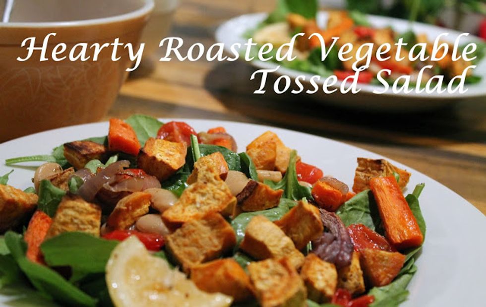 Preheat the oven to 350. On a large sheet tray toss the sweet potato, onion, and carrot with oil. Arrange the vegetables on half of the tray. Place the garlic on the tray and drizzle with oil. Place in the...