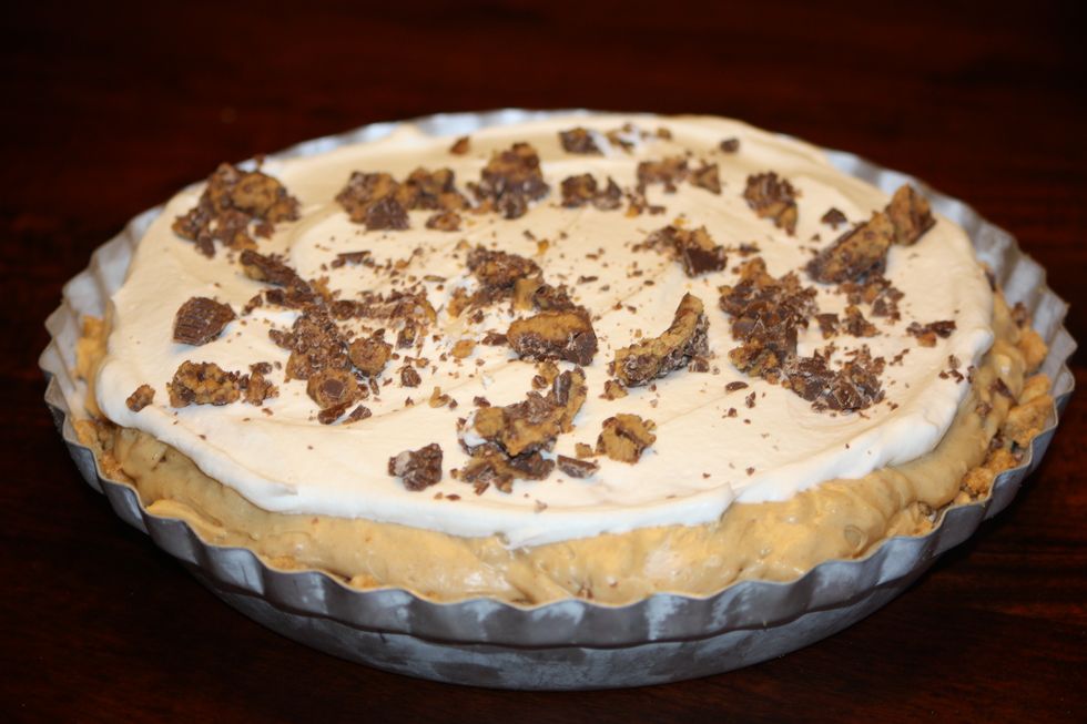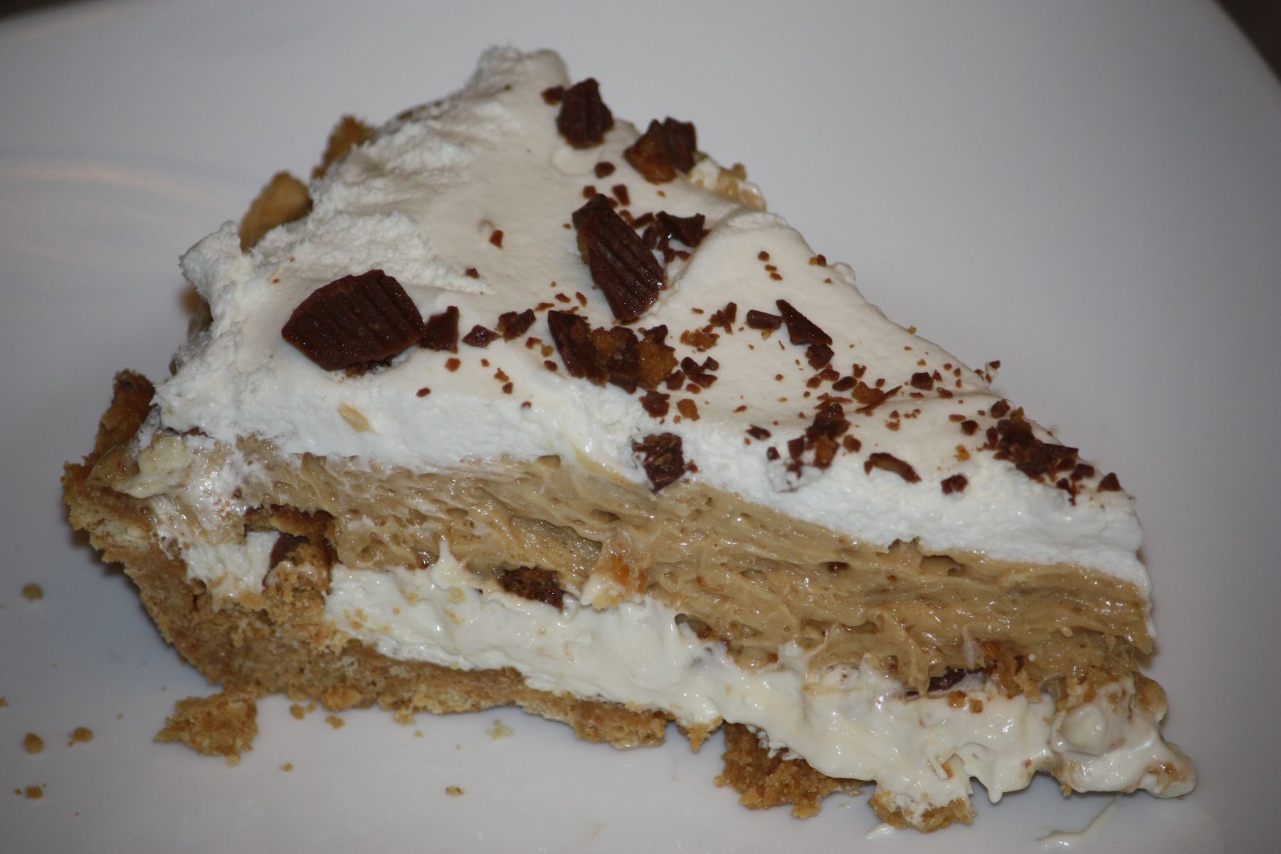 A delicious 'pie' with a Nutter Butter crust and then layers of peanut in one form or another.