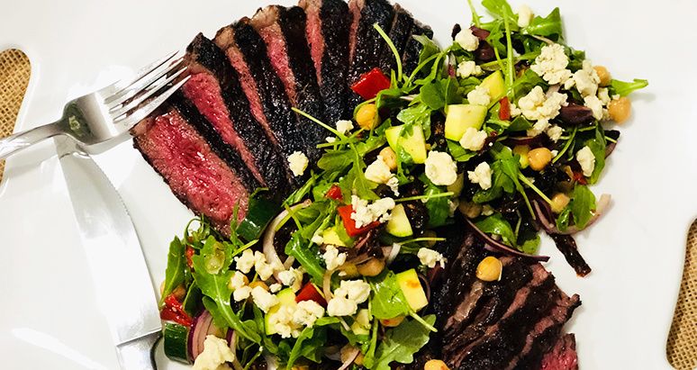 The Wagyu beef chuck eye steak is marinated in a variety of herbs and spices before being grilled to a medium-rare finish. Serve the tender steak with a Mediterranean salad for a delicious dish!