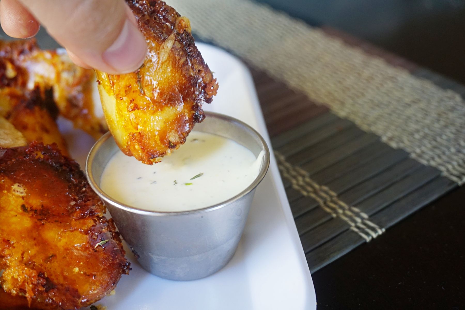 Crunchy roasted potatoes,herb infused with the brightness of lemon, with feta dip sauce just to lighten your taste buds! Perfectly balanced and a great side dish!