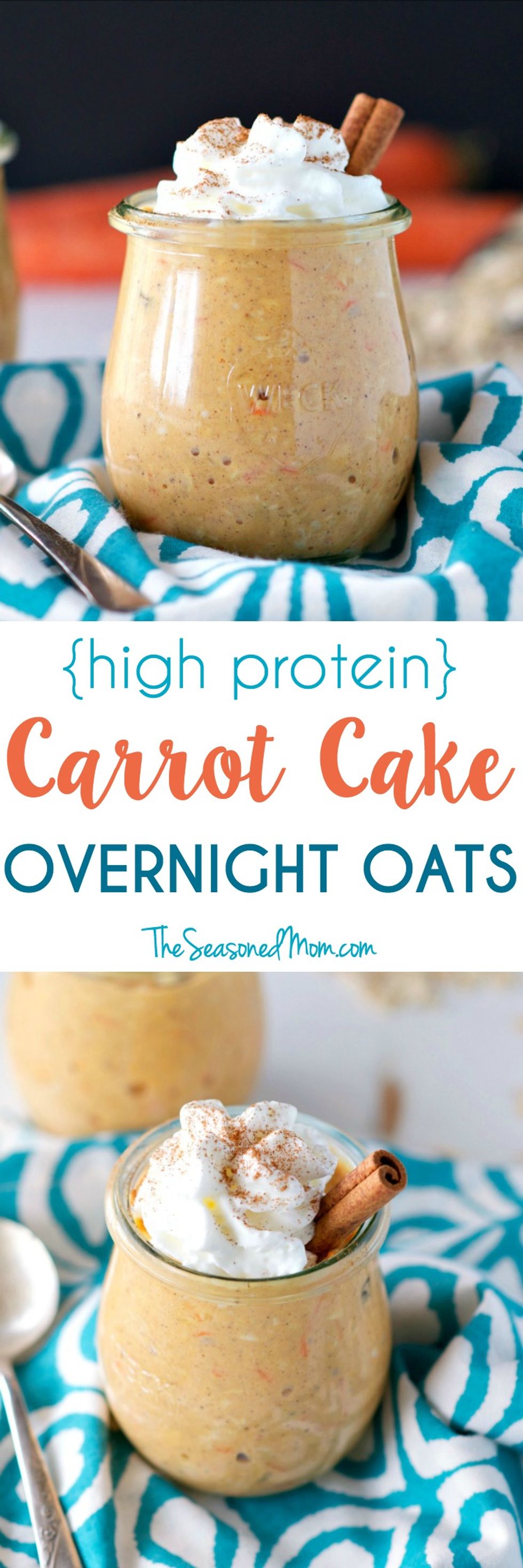 A delicious and healthy spring breakfast doesn’t get any easier than these creamy make-ahead High Protein Carrot Cake Overnight Oats! Thanks to plump raisins, shredded coconut, and warm spices, you’ll think that you’re indulging in dessert…but with plenty of fiber and protein, the clean eating breakfast will keep you full and energized all morning long!