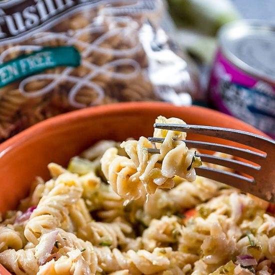 This tuna pasta salad is gluten-free, sweet and savory, pack with protein, and perfect for lunch or dinner!