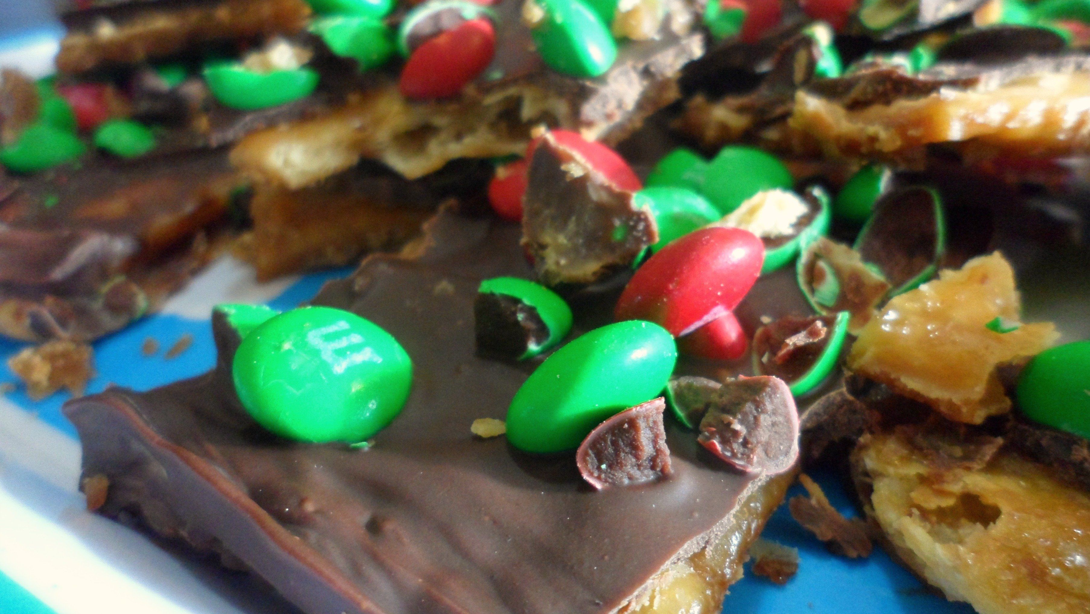 Peanut butter toffee made from saltine crackers. An easy holiday treat. Yum!