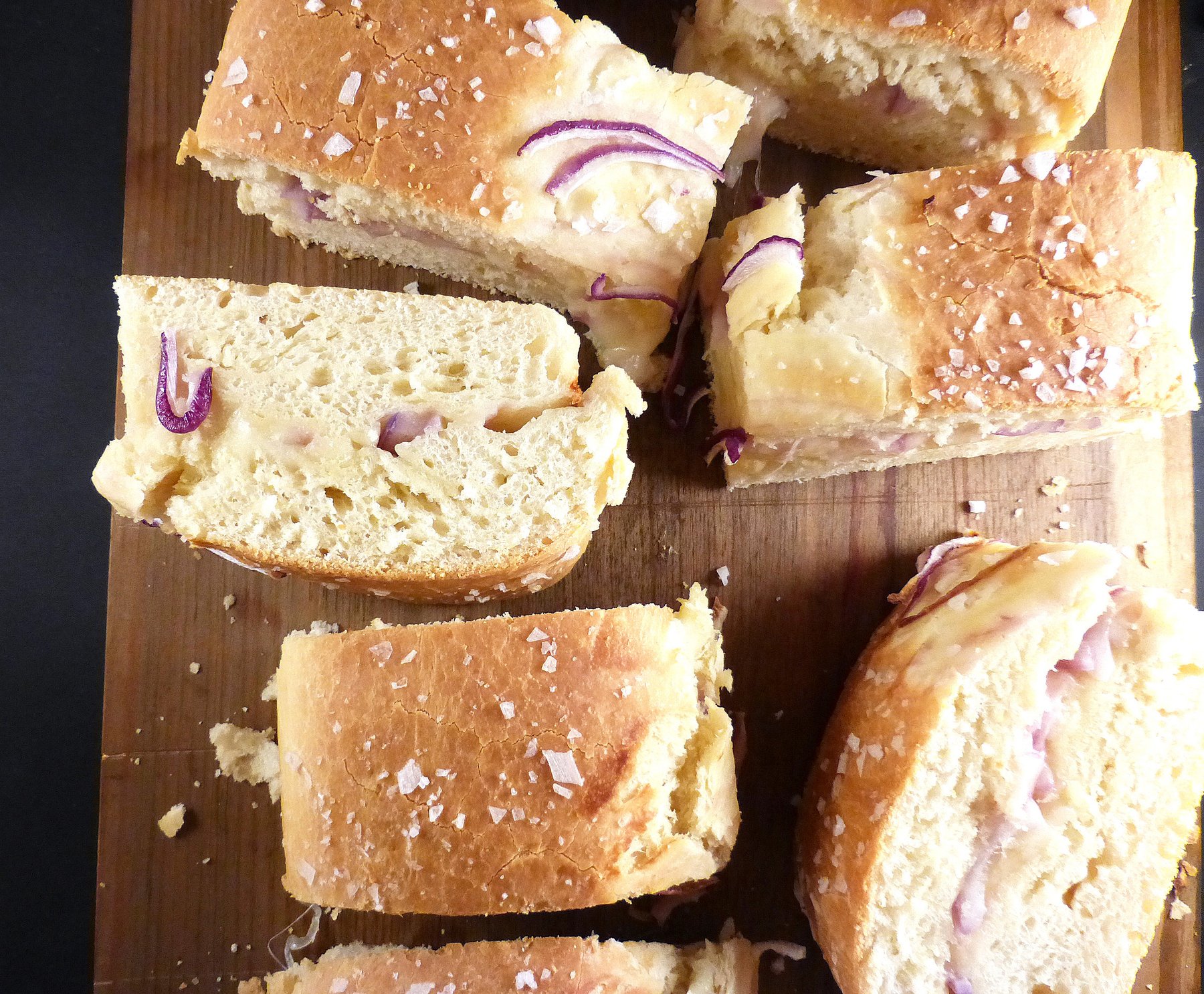 Home-baked Spelt Bread with Mozzarella and Red Onion