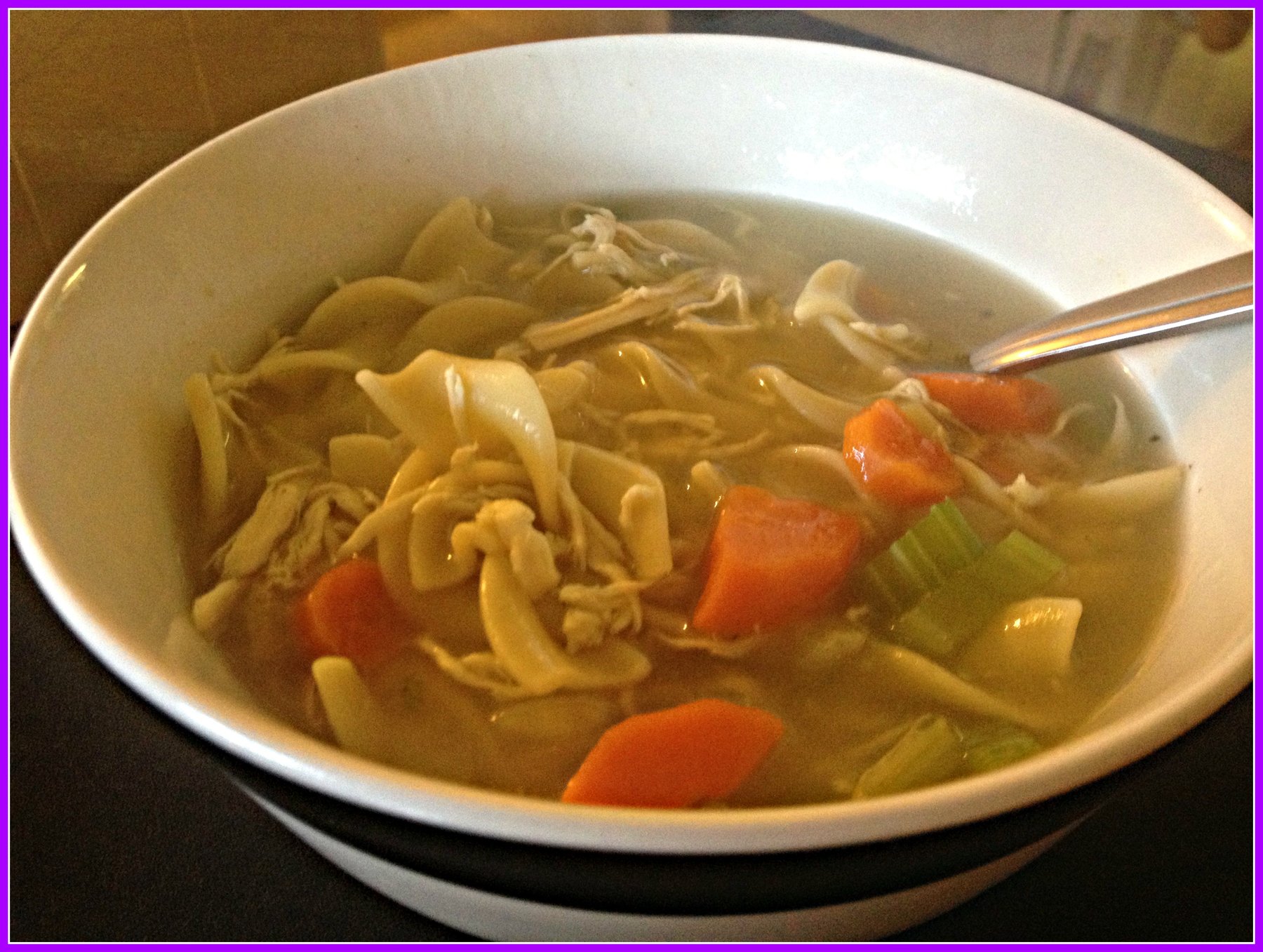Chicken noodle soup is comfort food at its finest. My sweet husband made me dinner one night and found this yummy and easy recipe. 45 minutes from start to finish. Pair it with some delicious French bread and you have a fabulous dinner in less than an hour. Also makes great leftovers, I made the whole recipe and we had lunch for the rest of the week. You could also freeze it if you would like.
