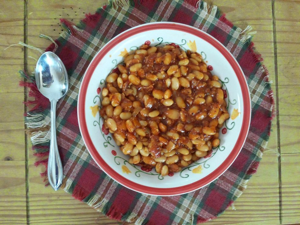 One of my favorite things to enjoy at summer meals is baked beans. I never dreamed of making my own until recently where I have become an avid label reader. While canned baked beans aren't necessarily bad for you, I have found that it is better and tastier to make your own! After several attempts to get that just right texture and flavor I have met with success! It's Northern beans(navy beans) meets a sweet, slightly spicy sauce with applewood smoked bacon, sauteed green pepper and ga