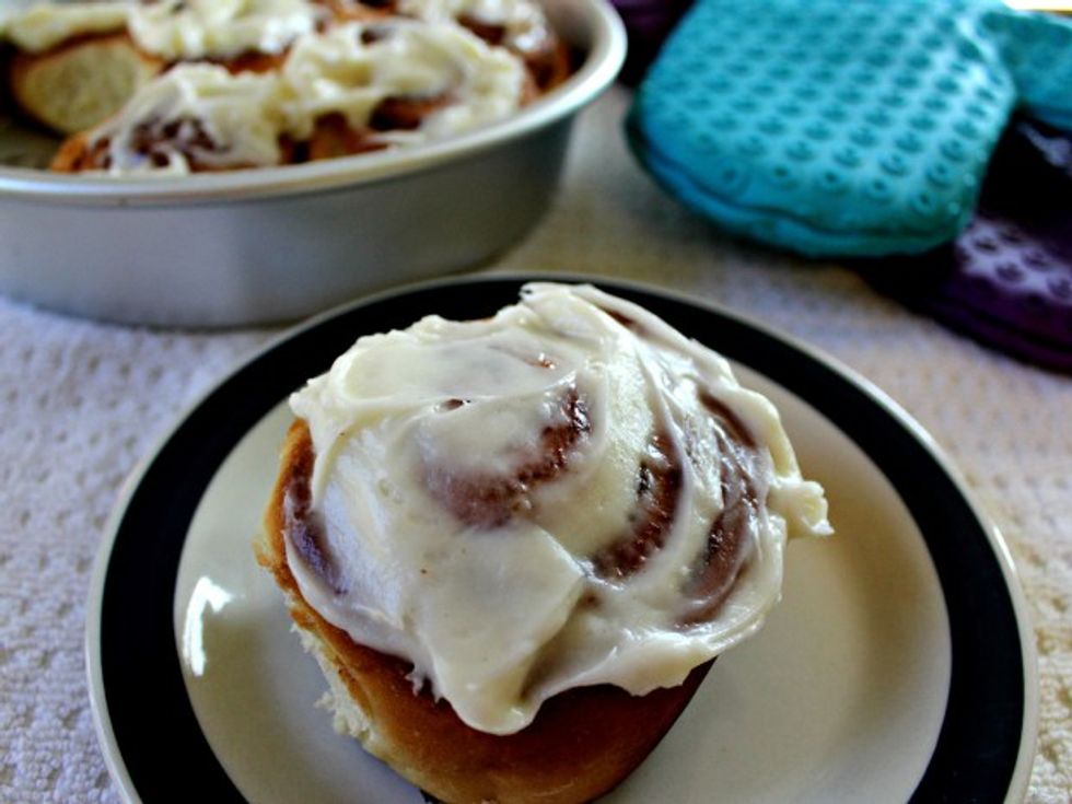 Mouth watering cinnamon buns with cream cheese icing. Perfect breakfast or brunch for a group. Can be made ahead of time and baked later.