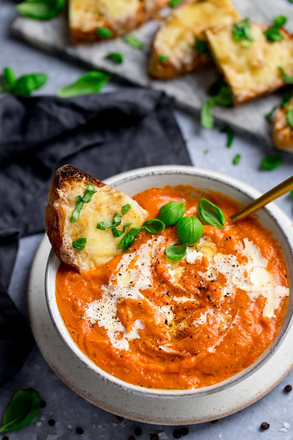 Homemade Cream of Tomato Soup Nicky CorbishleySeptember 11, 2020 170 Kitchen SanctuaryCreamy Tomato Soup with Basil cheese on toast - the added hidden veg means it's extra nutritious whilst still tasting indulgent!Homemade Cream of Tomato SoupSee the full directions on my site