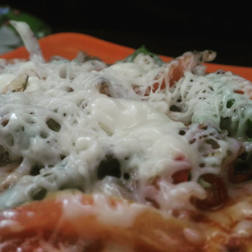 6. Now comes the trick, take a fry pan and keep it on low flame place the ready pizza on it and cover the lid. You can sprinkle some oil (preferable olive oil ) or some flour dust on the pan before keepint the pizza, so that it does not gets stuck and ruin your breakfast.