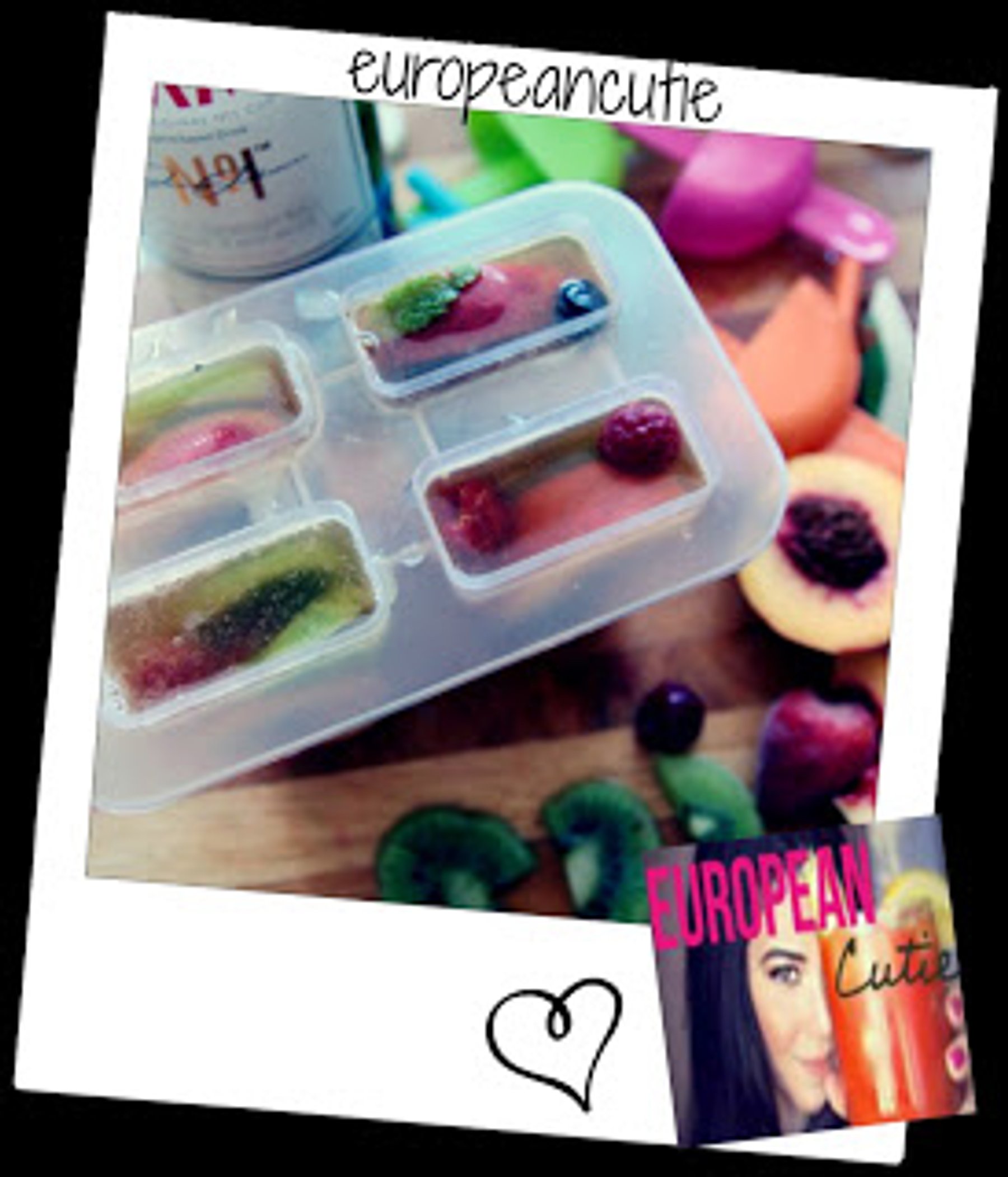 1. Slice up fruit into smaller portions. I used small peaches and cut them into eighths and peeled the kiwifruit and cut each slice in half. Pop the fruit into the ice block cavities layering them along...