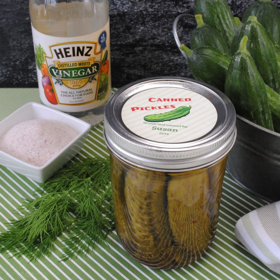 Cut pickles into discs, spears, or sandwich slices and add to the jar with all ingredients except the water. Once everything is in the jar, fill to the very top with water and screw lid on very tightly....