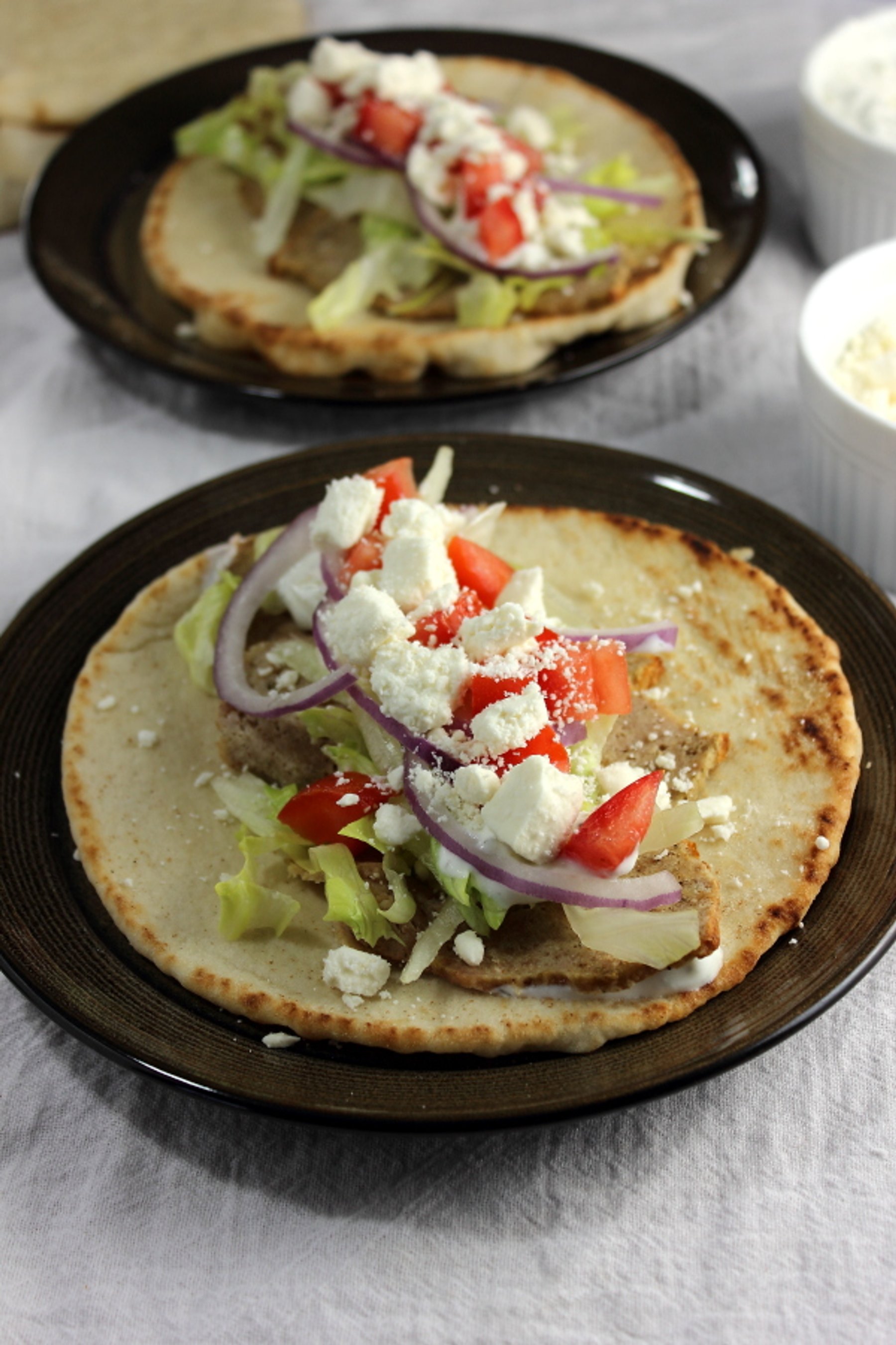4.Top with lettuce, tomato, red onion, feta...
