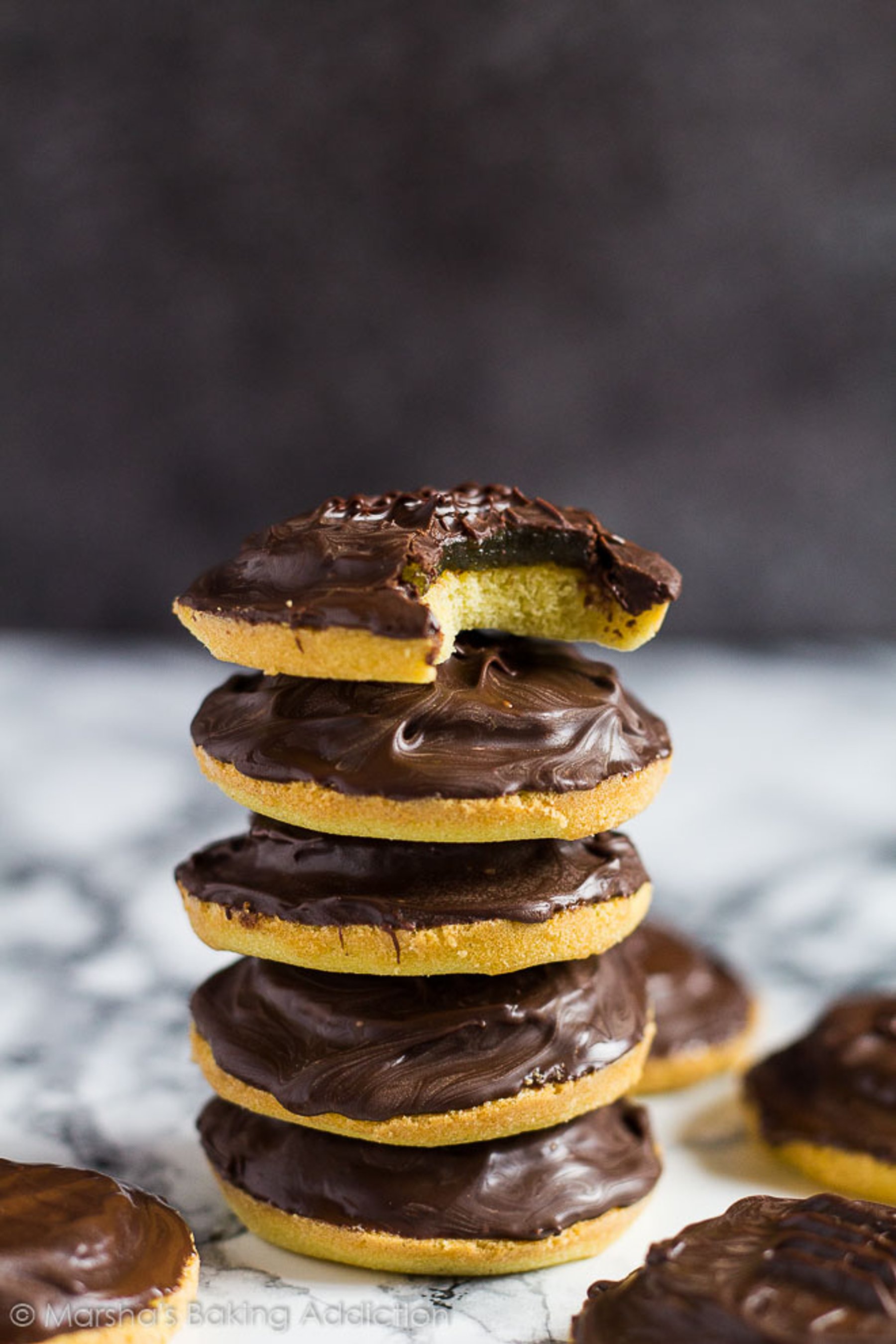 A British classic. Biscuit sized cakes topped with an orange jelly and sealed with dark chocolate!