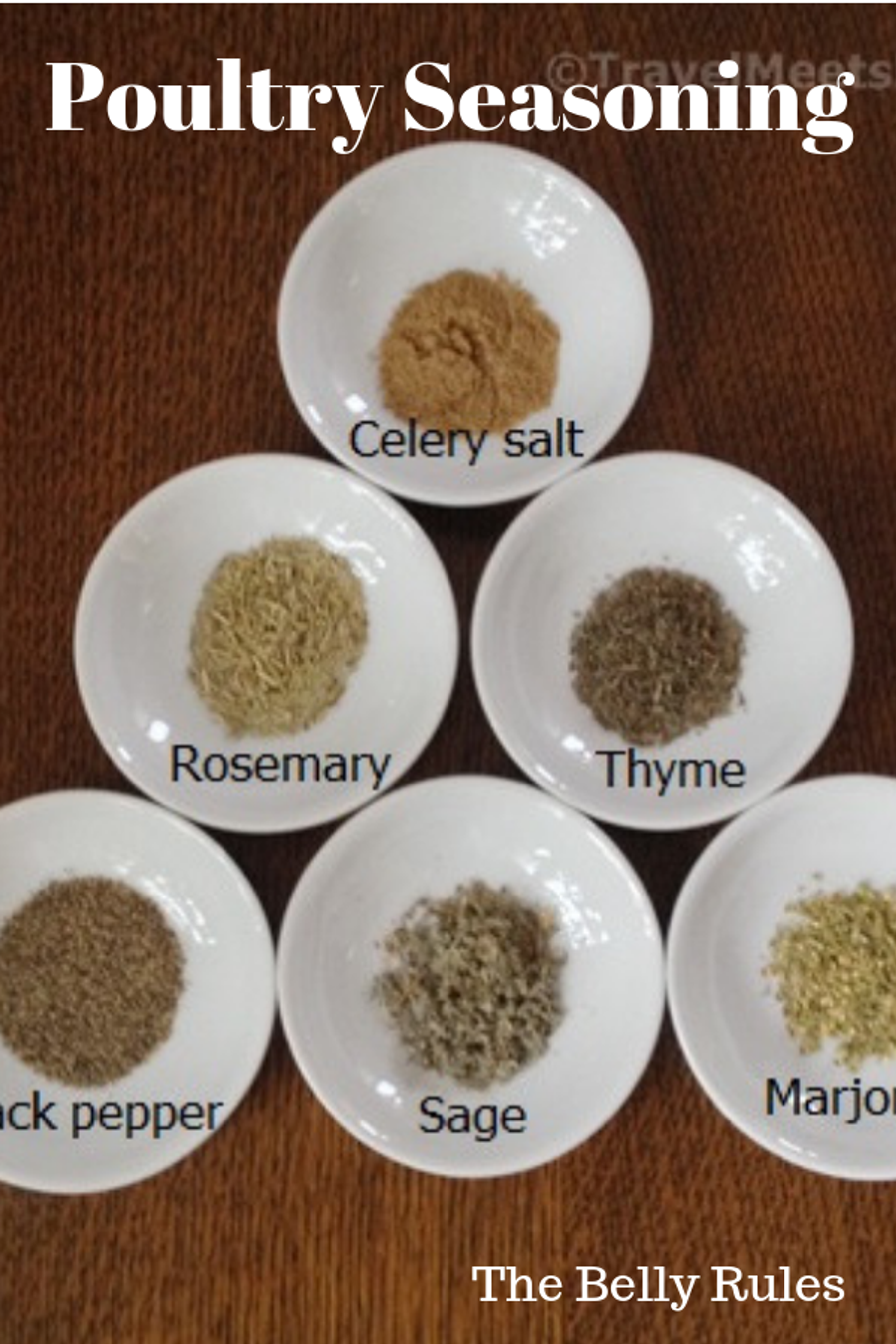 To Use: Mix 2 to 3 Tbsp. with 2 quarts bread crumbs, 1 egg, salt & pepper to taste, 1 small onion minced and sauteed in 1/4 cup butter. Water or broth...