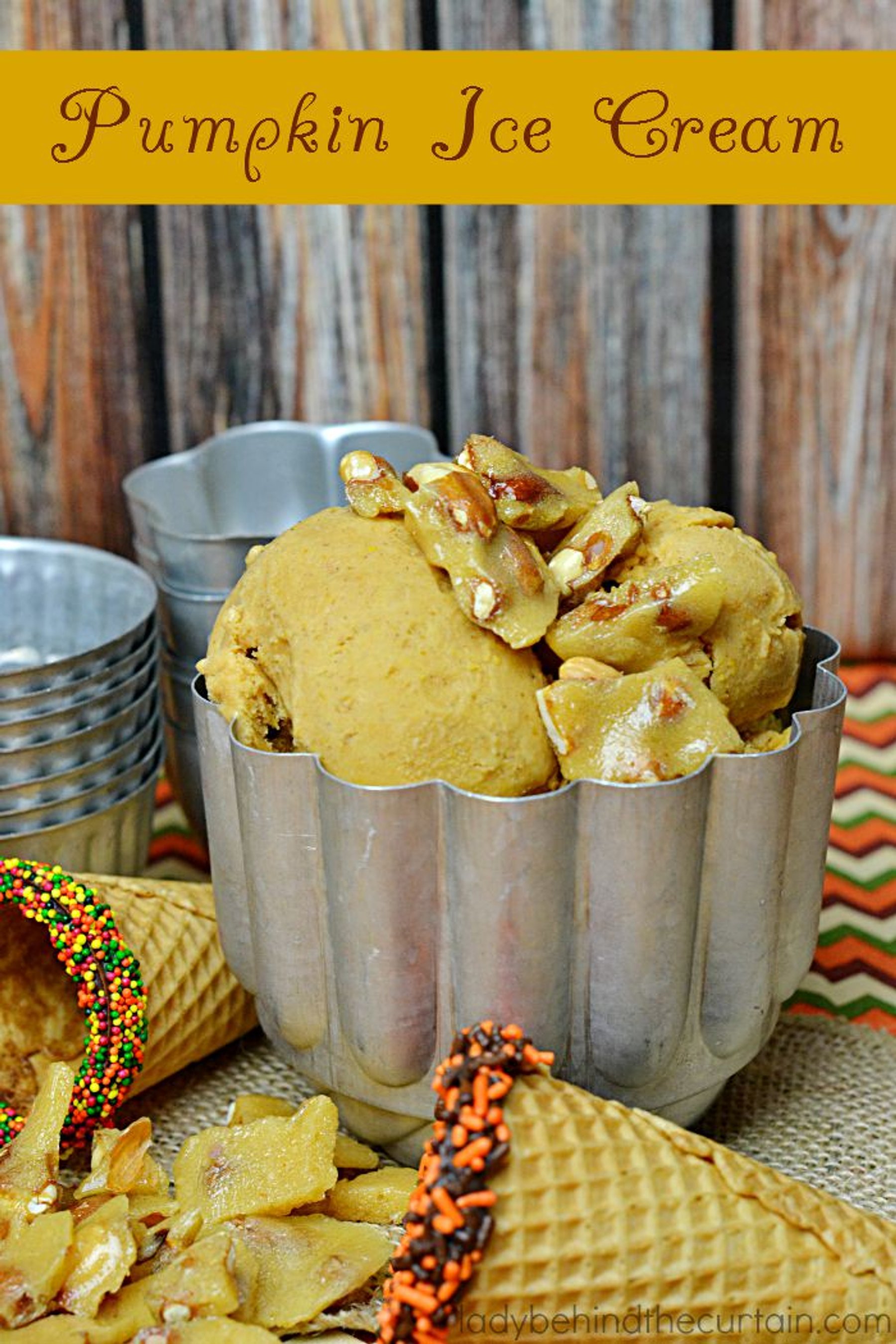 Like eating a cold rich thick pumpkin pie. Fall is in the air and pumpkin is ranking supreme. Instead of serving pumpkin pie surprise everyone with pumpkin ice cream! Your guests will truly think they are eating pumpkin pie. In fact I would recommend adding a dollop of whip cream on top. For a little crunch and even more flavor, crumble some store bought peanut brittle on top.