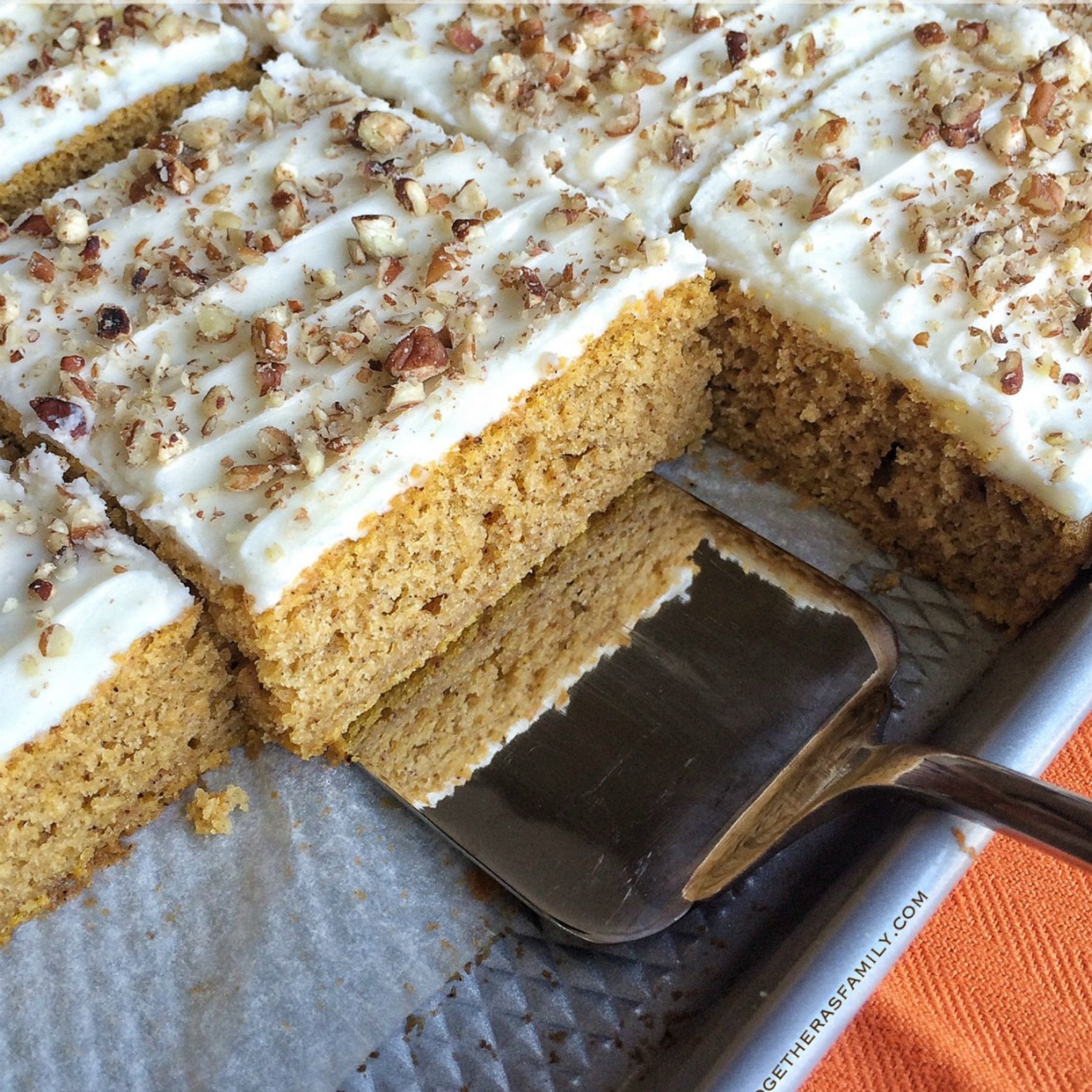 Pumpkin Spice Sheet Cake is full of pumpkin and warm fall spices. Soft, moist, and topped with the best cream cheese frosting and sprinkled with chopped pecans.