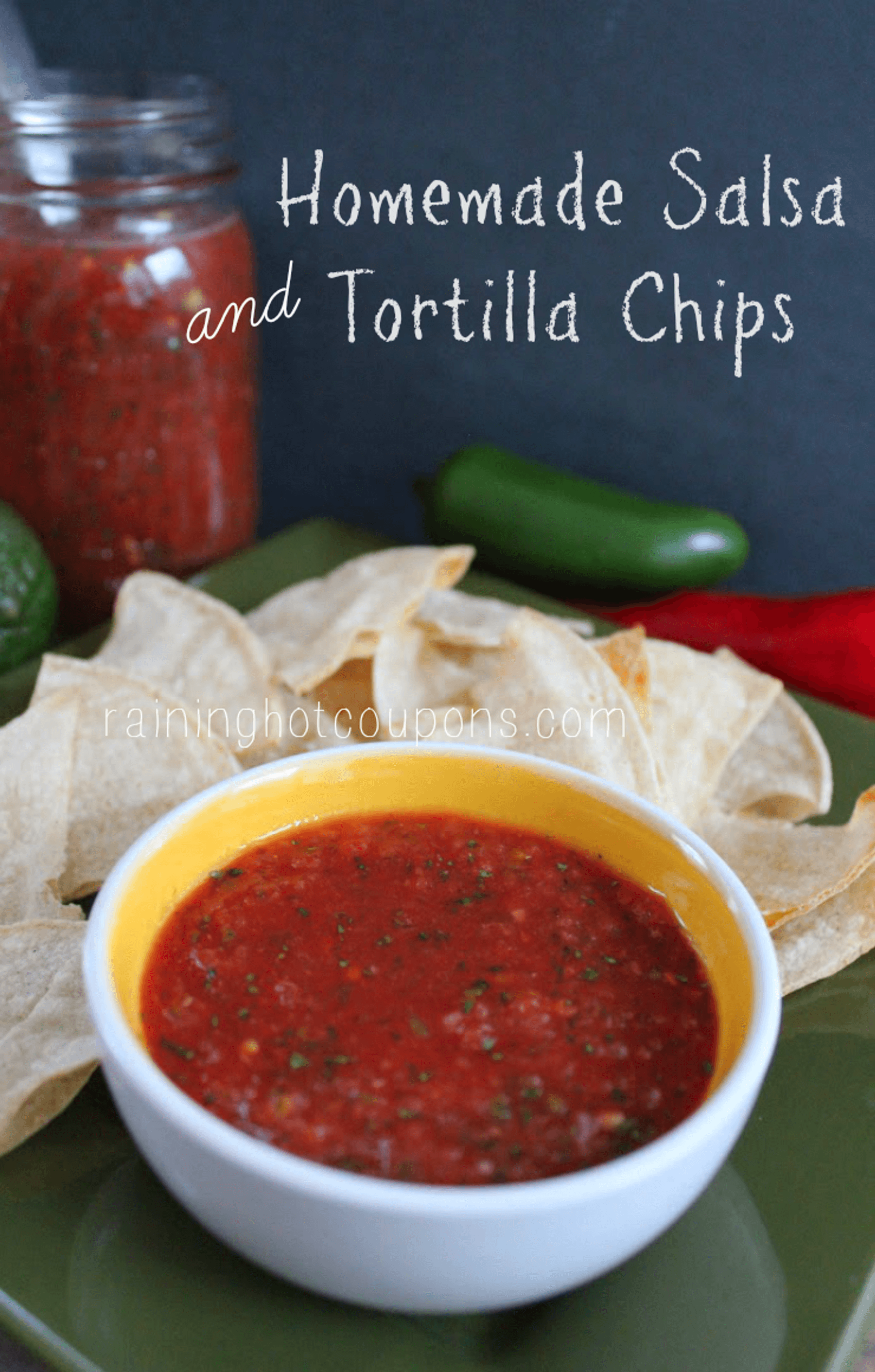 Ever notice how most Mexican Restaurants have the best chips and salsa?! Well, that’s because a lot of them make their own chips and their own salsa. The chips are very easy to make and usually a lot healthier than store bought ones. You can control how much salt or seasoning you put on them. I like the chips plain but sometimes I also like to put a little garlic or lemon pepper seasoning on them. Get creative. icon wink Homemade Salsa and Tortilla Chips Enjoy…
