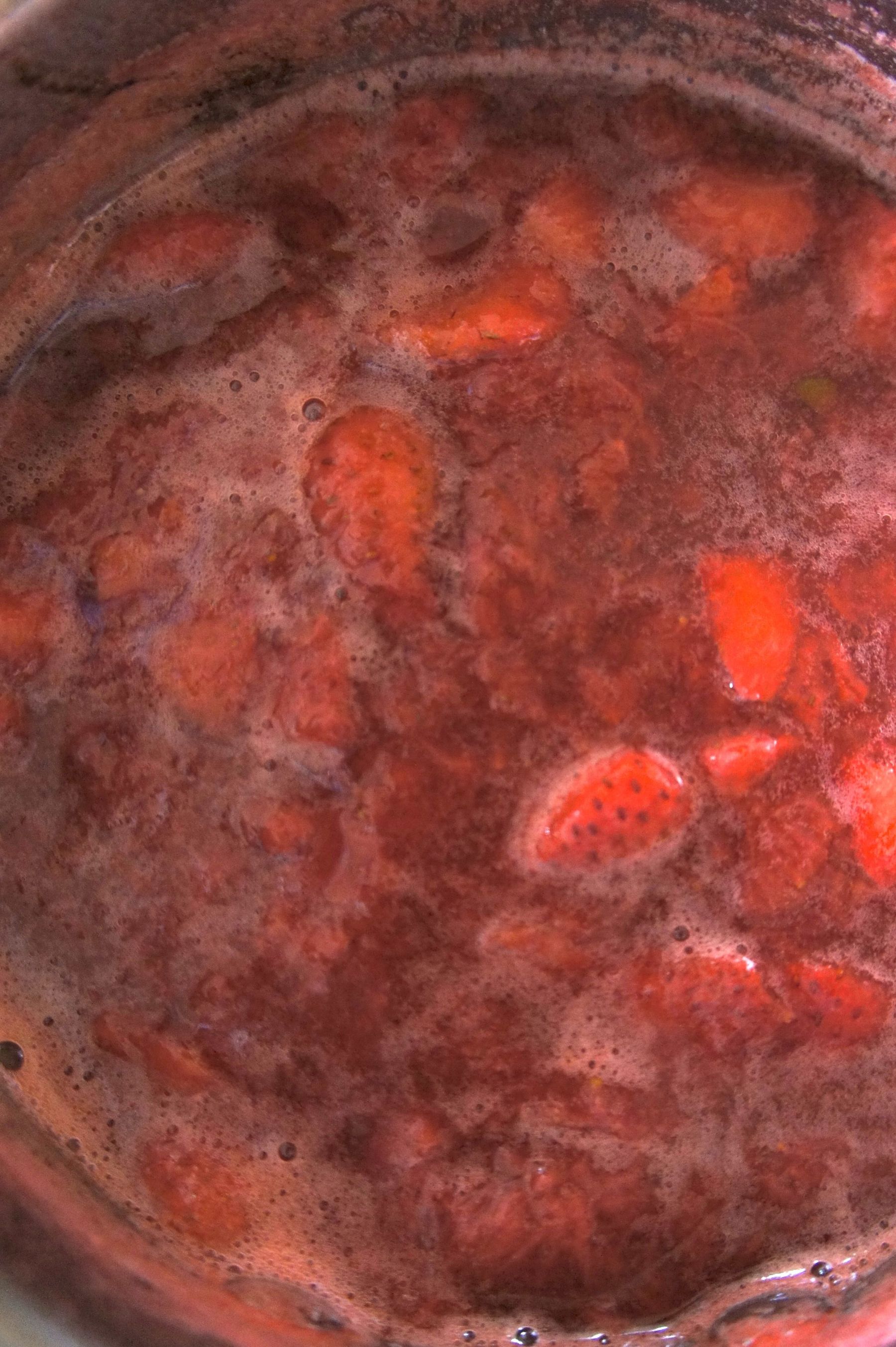 Set aside about 1/3 of the chopped strawberries.