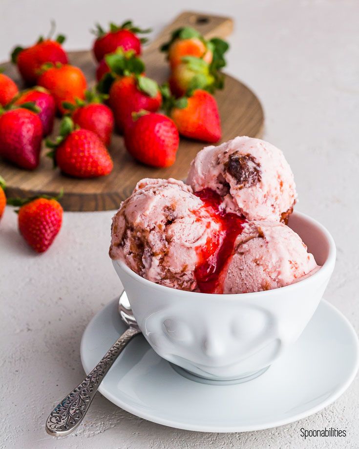 Homemade Strawberry Lemongrass Ice Cream with White Balsamic Vinegar