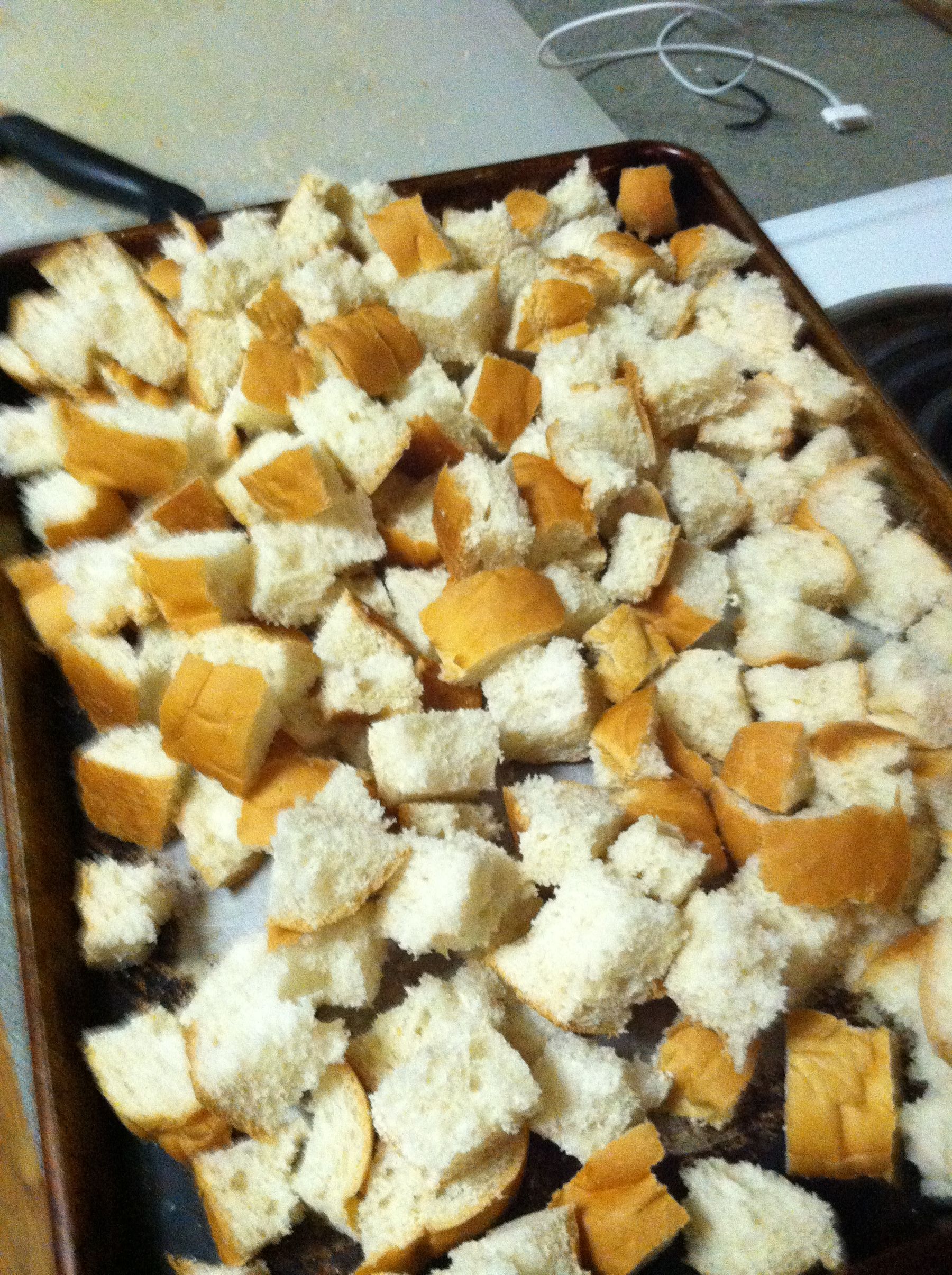 3 – 4 loaves French or Italian bread (Cut into cubes and dried)