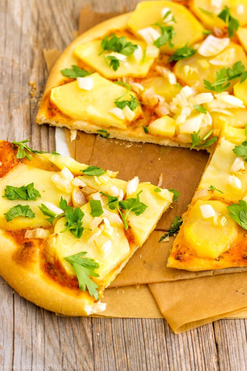 This homemade vegan potato pizza is loaded with simple yet flavorful ingredients! Delicious & healthier version of the classic cheesy pizza.